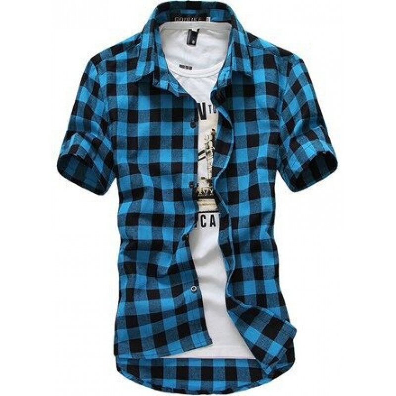 AliExpress 국경 간 유럽과 미국 남성 캐주얼 격자 무늬 셔츠 남성 유행 패션 대형 남성 옷깃 반팔 셔츠스토어 가기