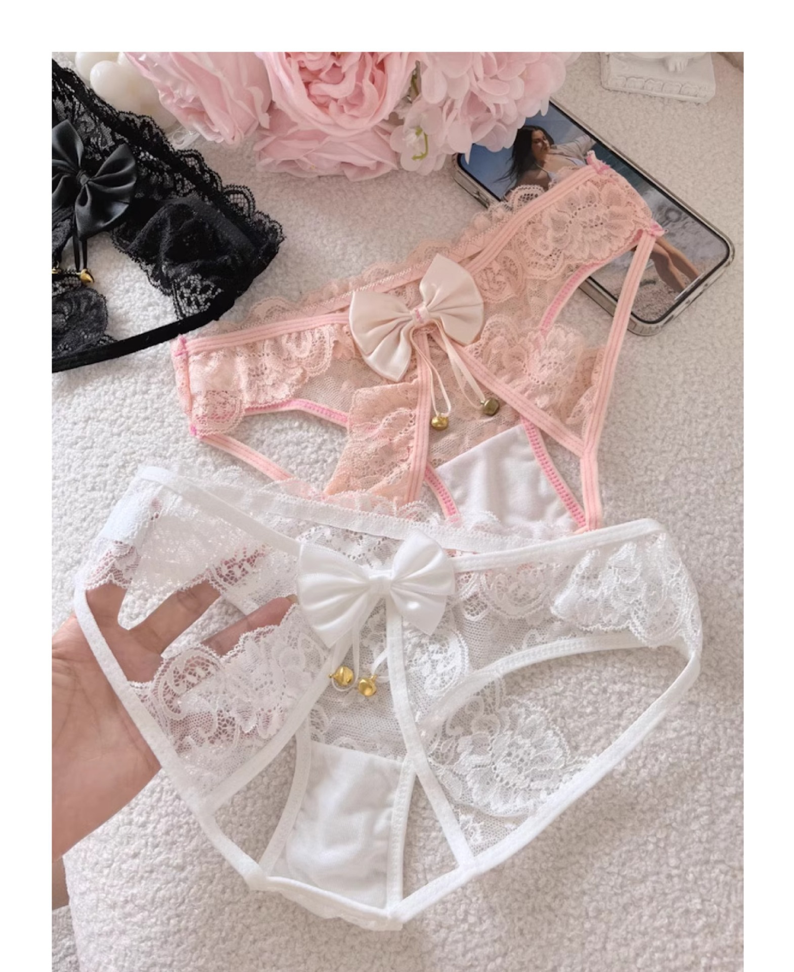 움직이면 소리가 납니다~ 섹시하고 흥미로운 레이스 가랑이가 없는 속이 빈 리본 팬티 소녀 순수한 욕망 로우 웨이스트 팬티