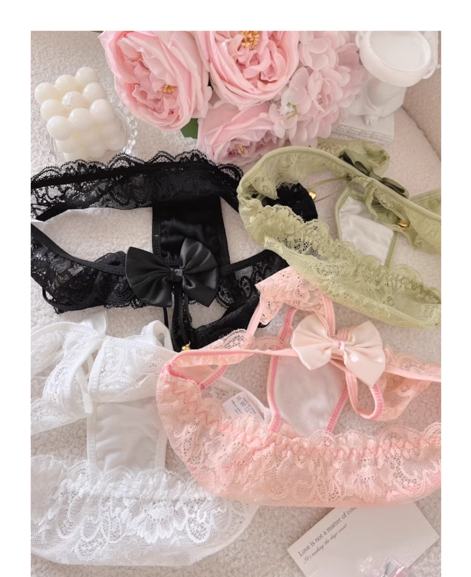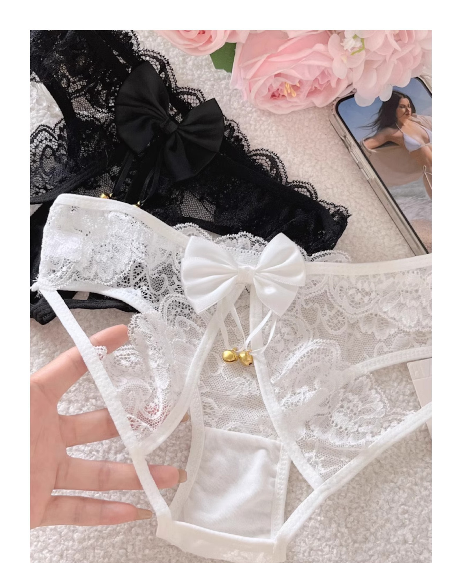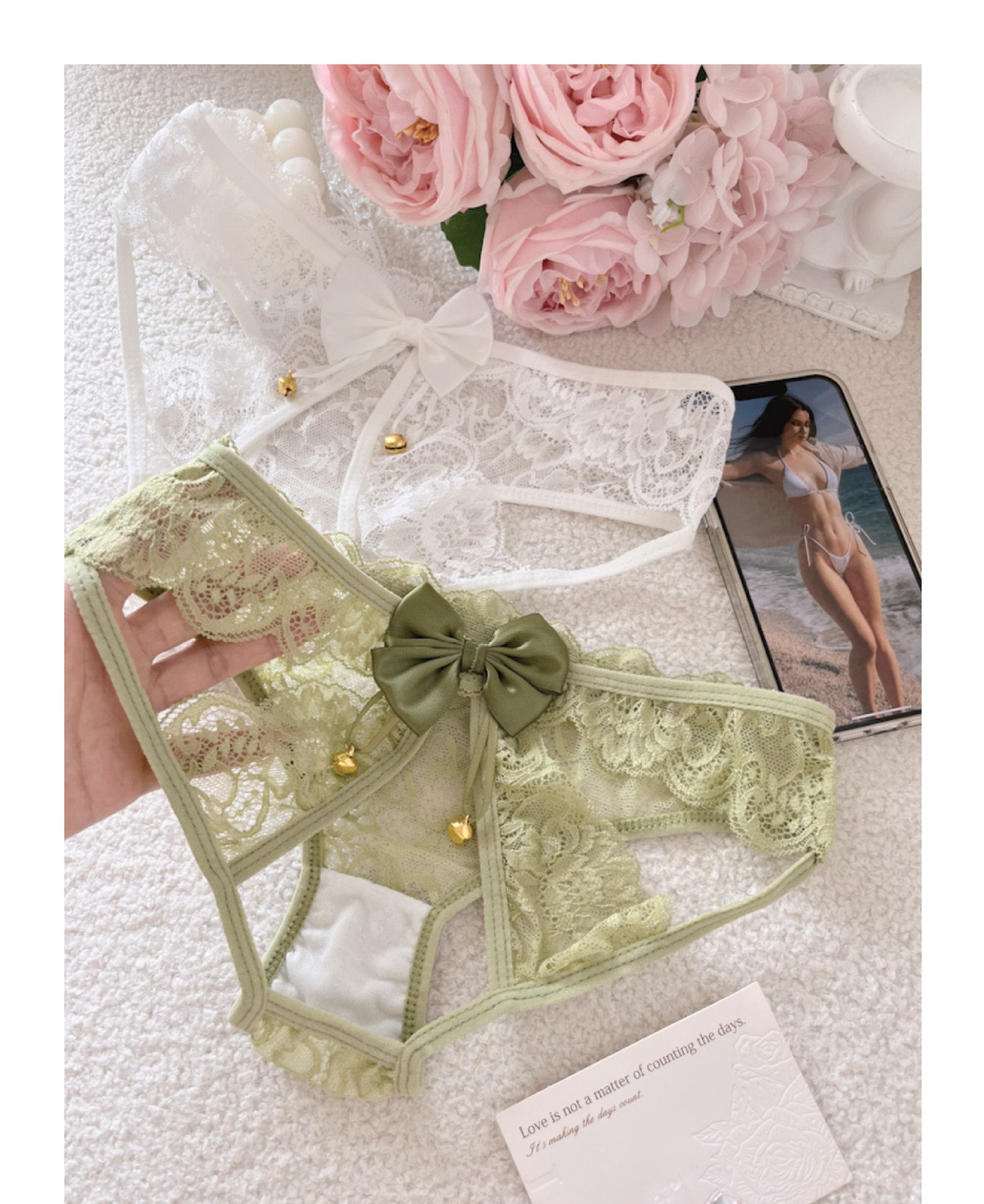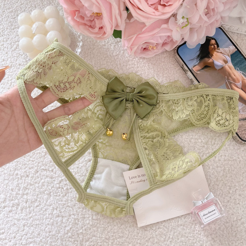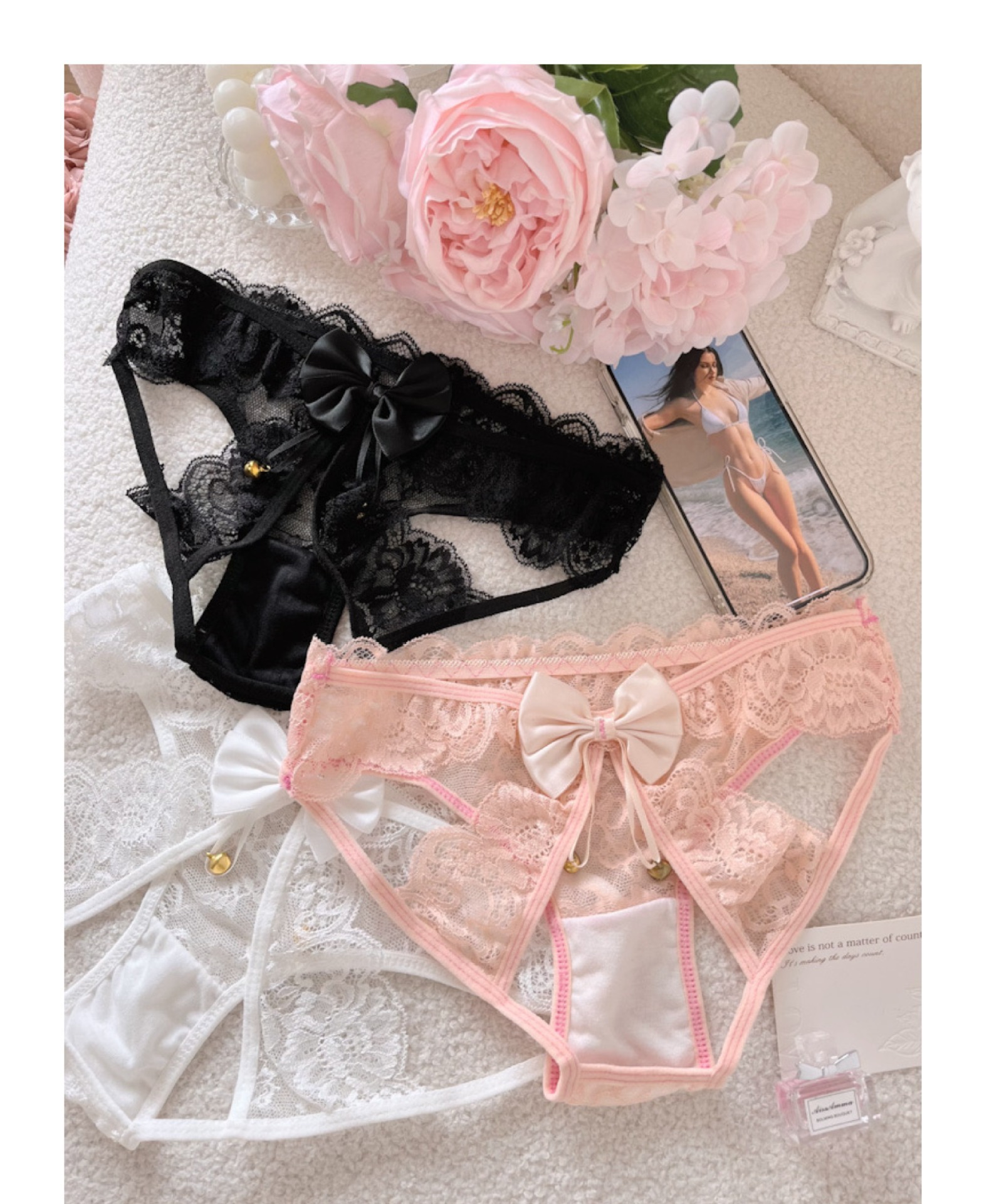 움직이면 소리가 납니다~ 섹시하고 흥미로운 레이스 가랑이가 없는 속이 빈 리본 팬티 소녀 순수한 욕망 로우 웨이스트 팬티스토어 가기