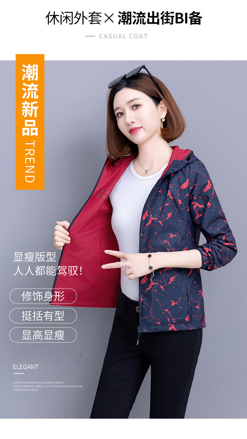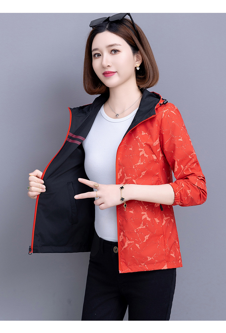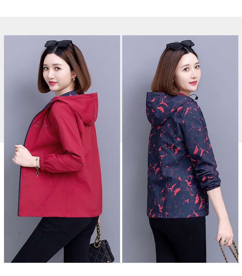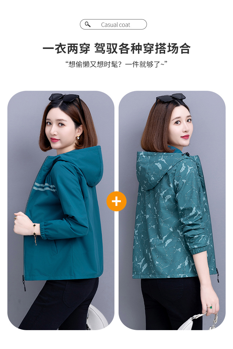 여성을위한 양면 후드 야외 재킷 재킷 봄, 가을 중년 어머니 방풍 및 방수 카디건