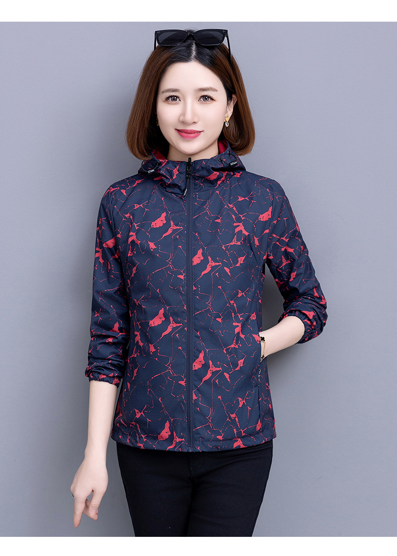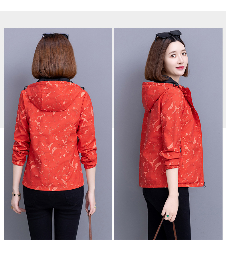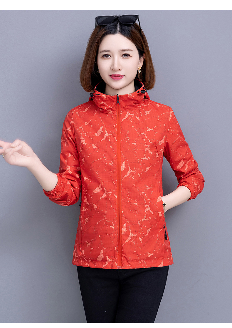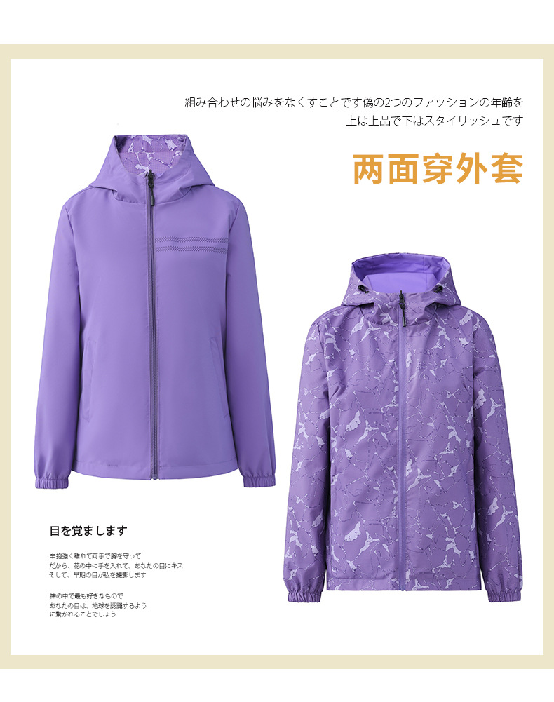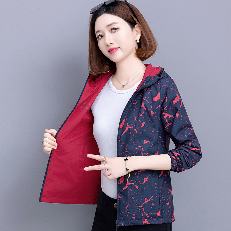 여성을위한 양면 후드 야외 재킷 재킷 봄, 가을 중년 어머니 방풍 및 방수 카디건