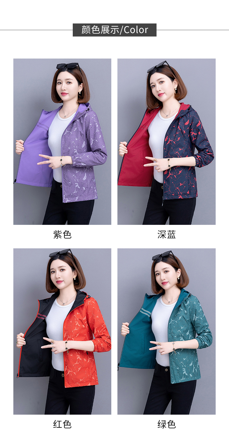 여성을위한 양면 후드 야외 재킷 재킷 봄, 가을 중년 어머니 방풍 및 방수 카디건스토어 가기