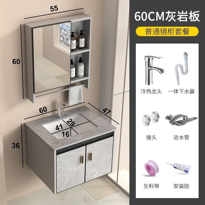 • 재즈 골드 그레이 슬레이트 세면대 + 거울장 - 재즈 서랍 60CM