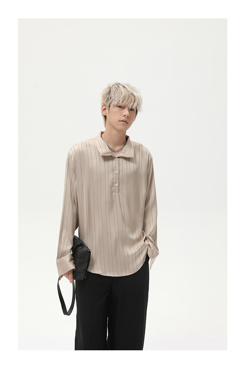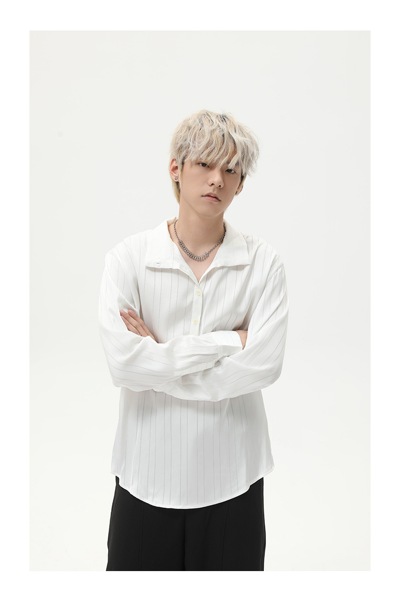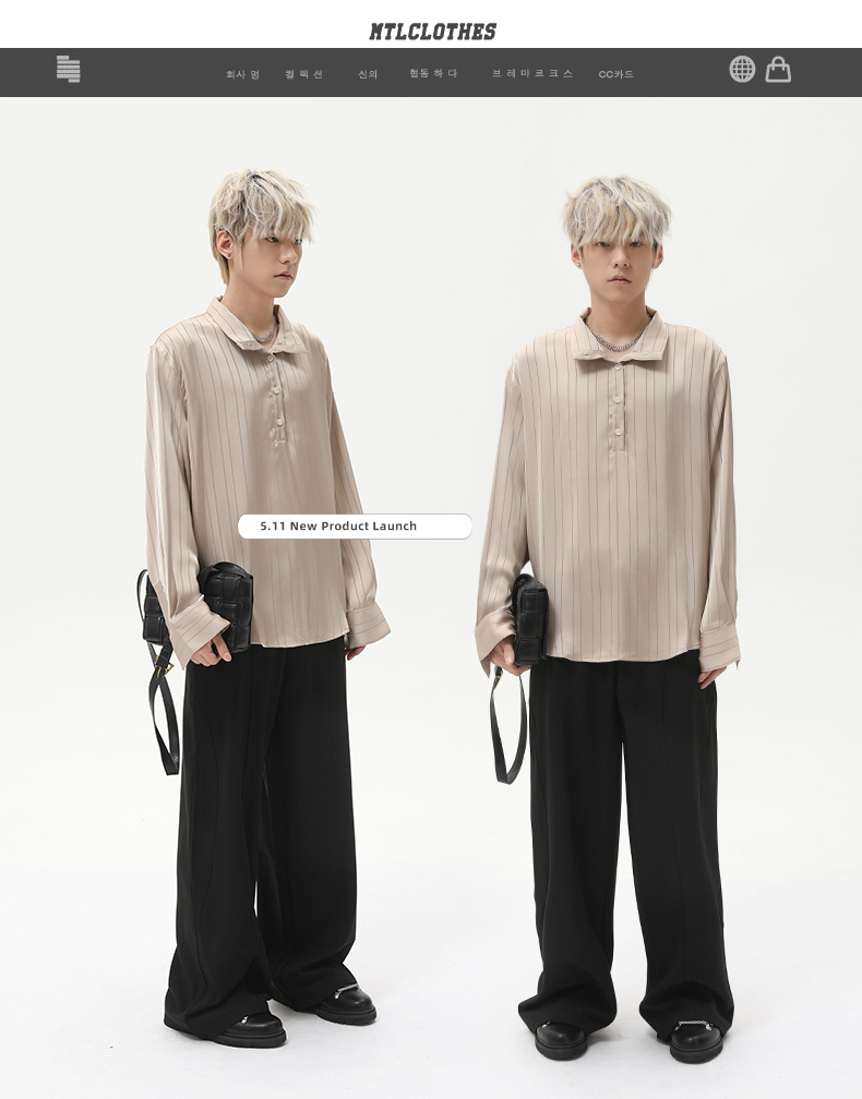 MTLCLOTHES 남성복 | 아메리칸 라이트 럭셔리 하이엔드 스트라이프 레이지 라펠 가디건 드레이프 캐주얼 셔츠 트렌디스토어 가기