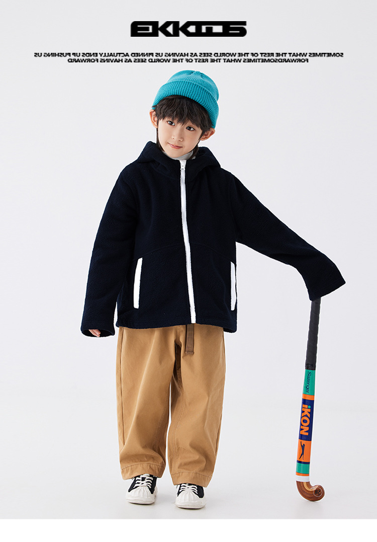 EK 아동복 심플하고 다재다능한 남아용 후드 재킷 플러스 벨벳 두꺼운 중대형 아동 따뜻하고 트렌디한 쿨 탑 스웨트 셔츠스토어 가기