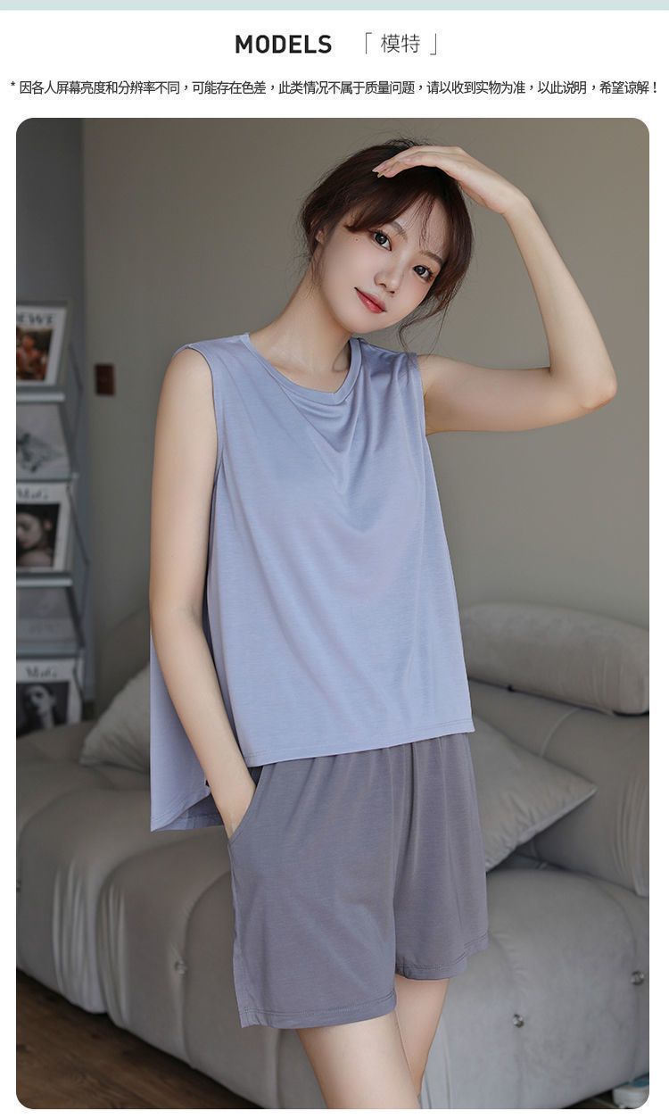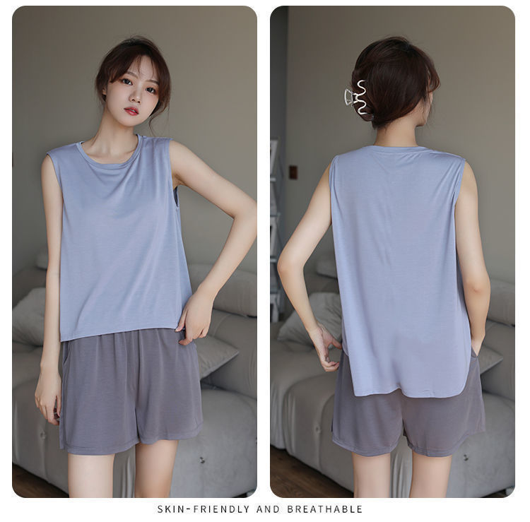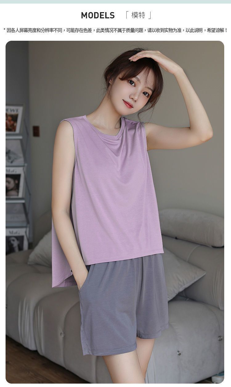 여성용 모달 조끼 잠옷, 여름용 가슴 패드 포함, 민소매 얇은 시원한 멜빵 잠옷, 아우터웨어, 대형 사이즈, 홈룸스토어 가기