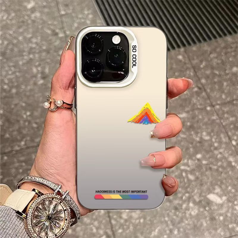 Apple 16/15/14pro 휴대폰 케이스에 적합한 Rainbow Mountain 컬러 실버 쉘 15promax13/12/11X 단순