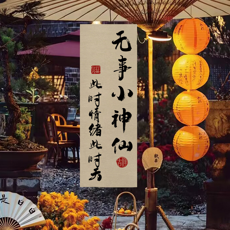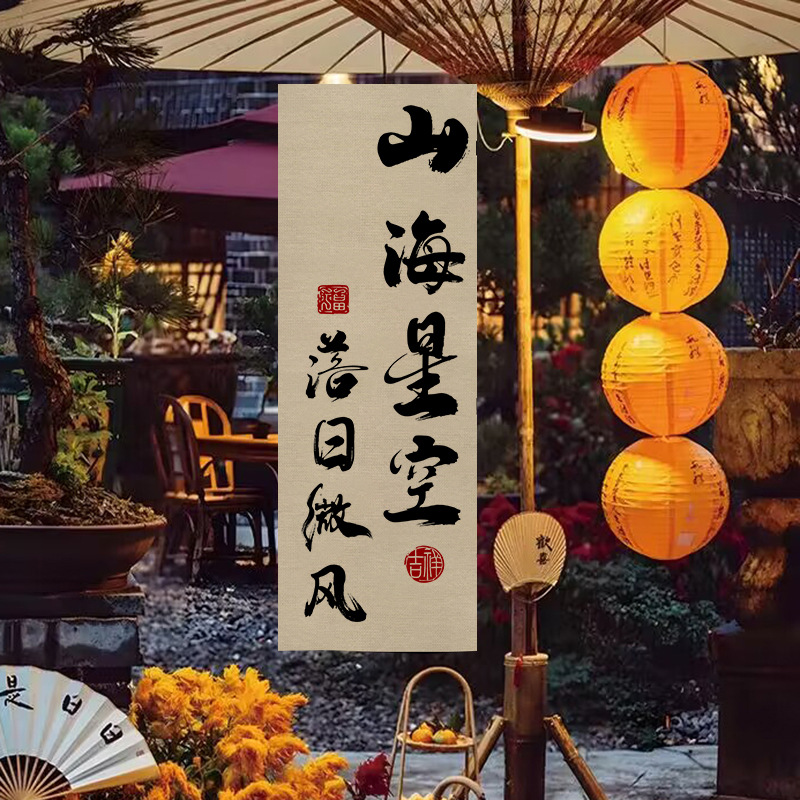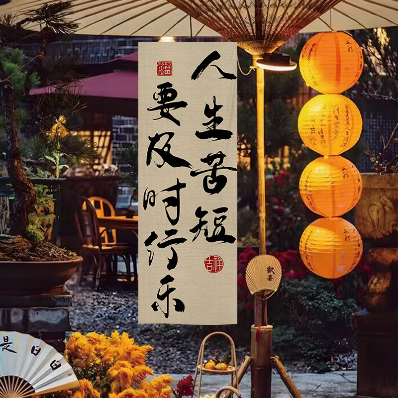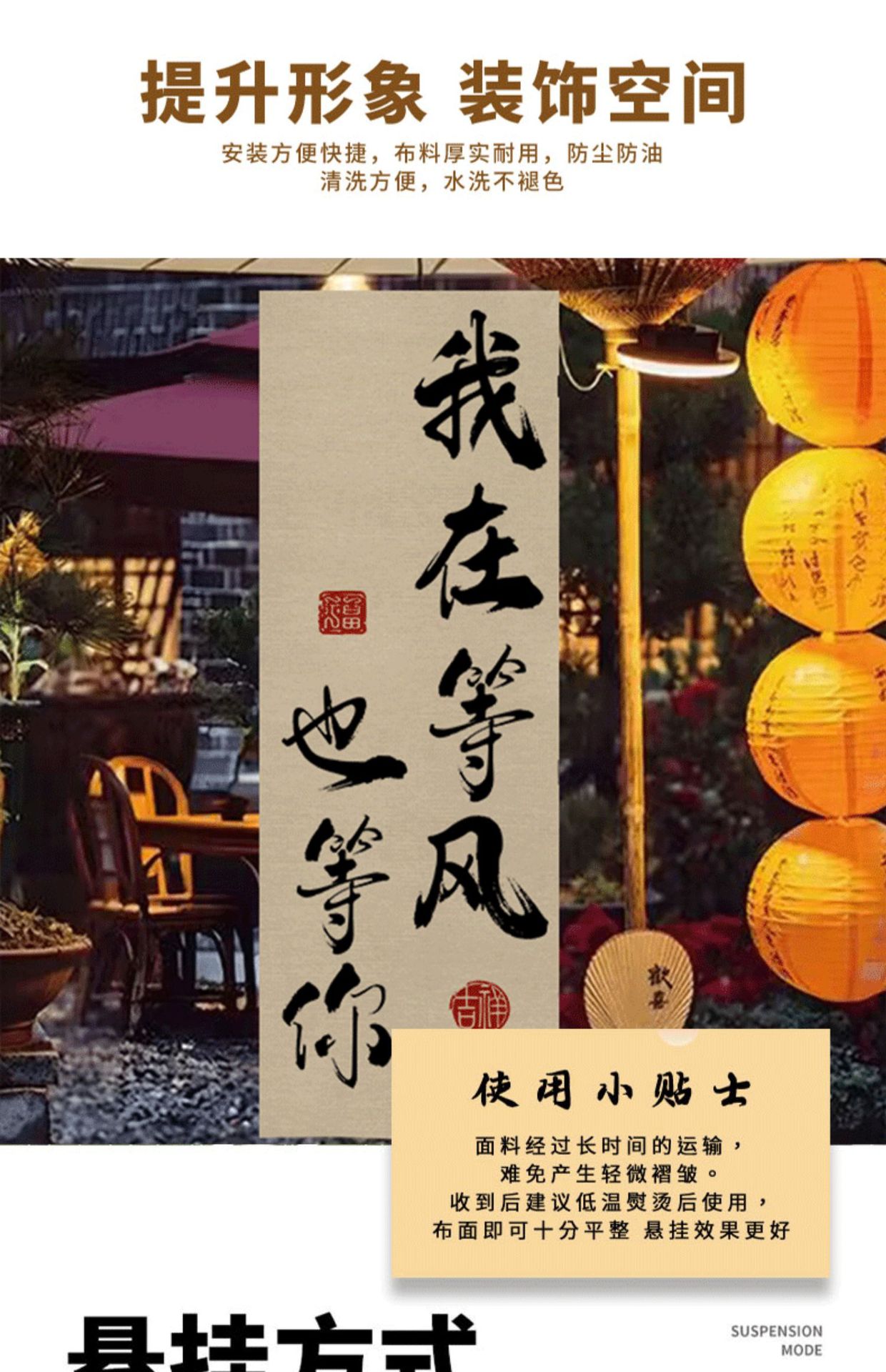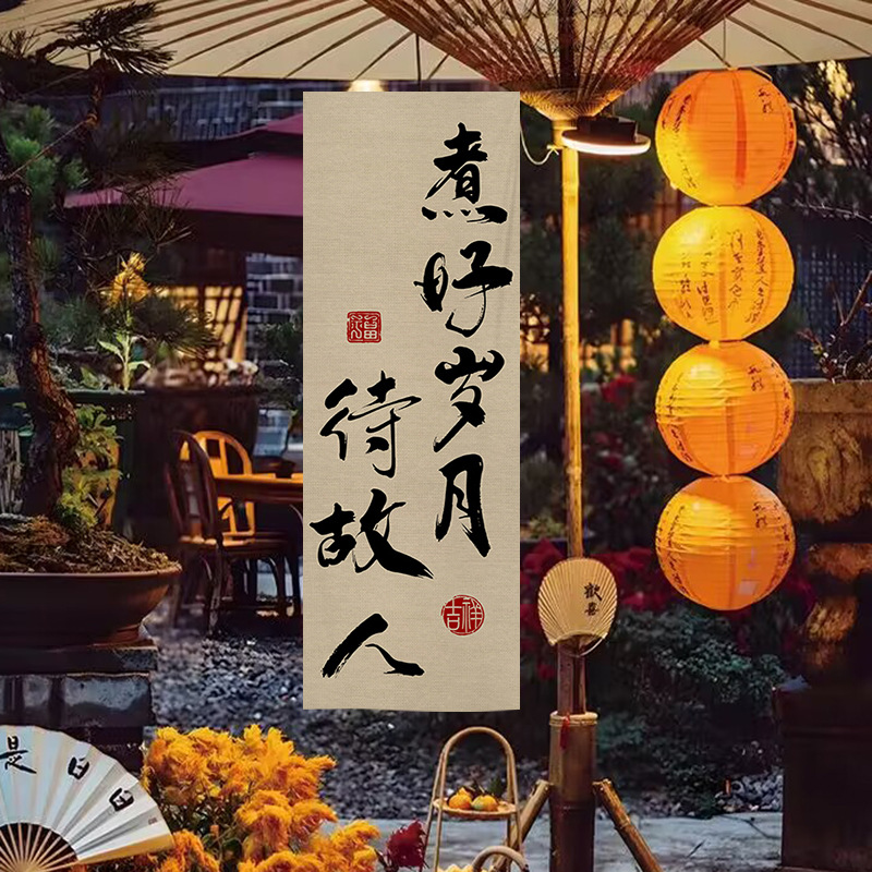 围炉煮茶挂布小院户外露营地氛围感装饰中式书法背景摆摊广告墙布