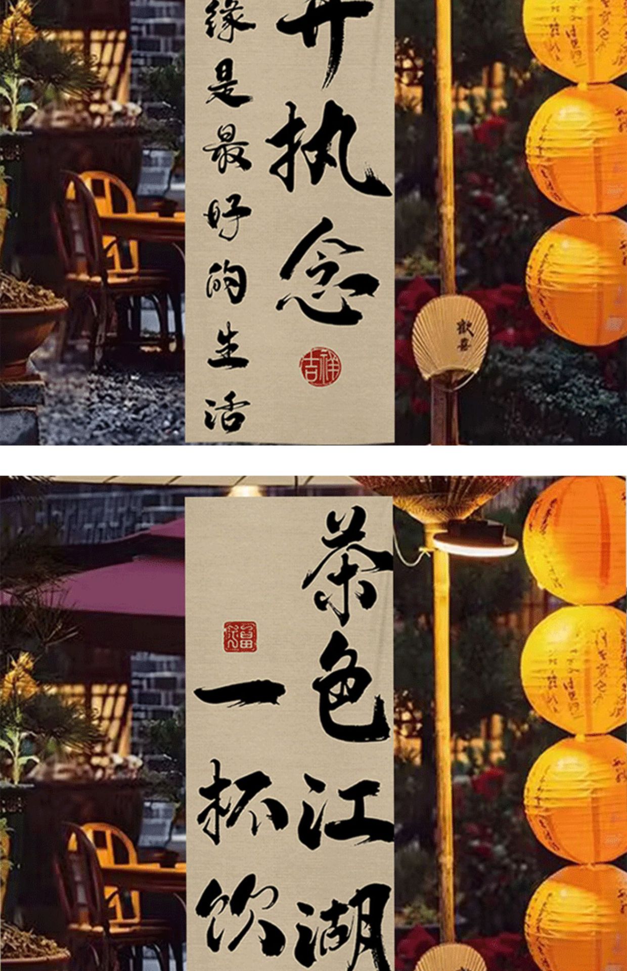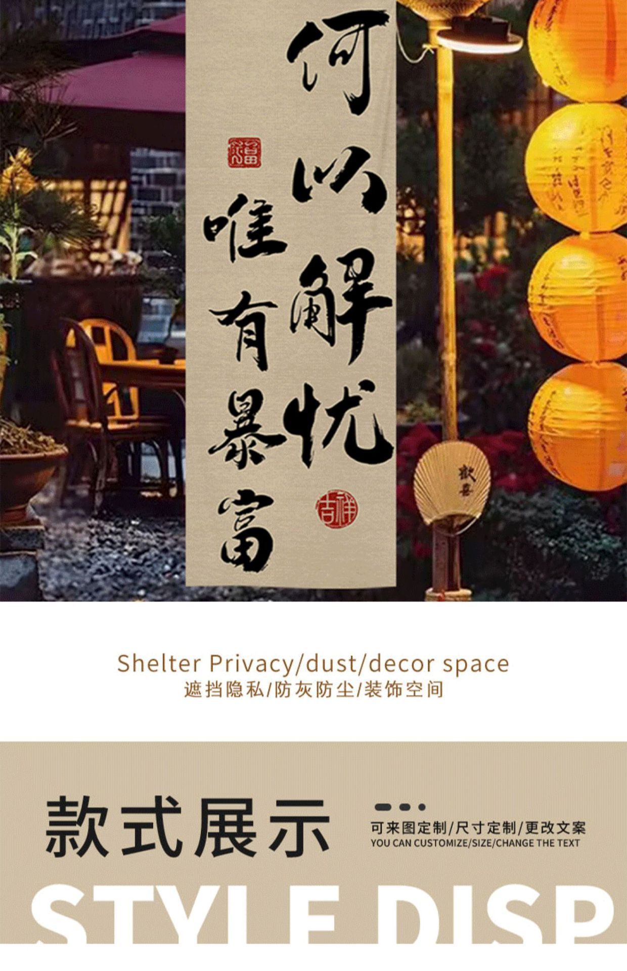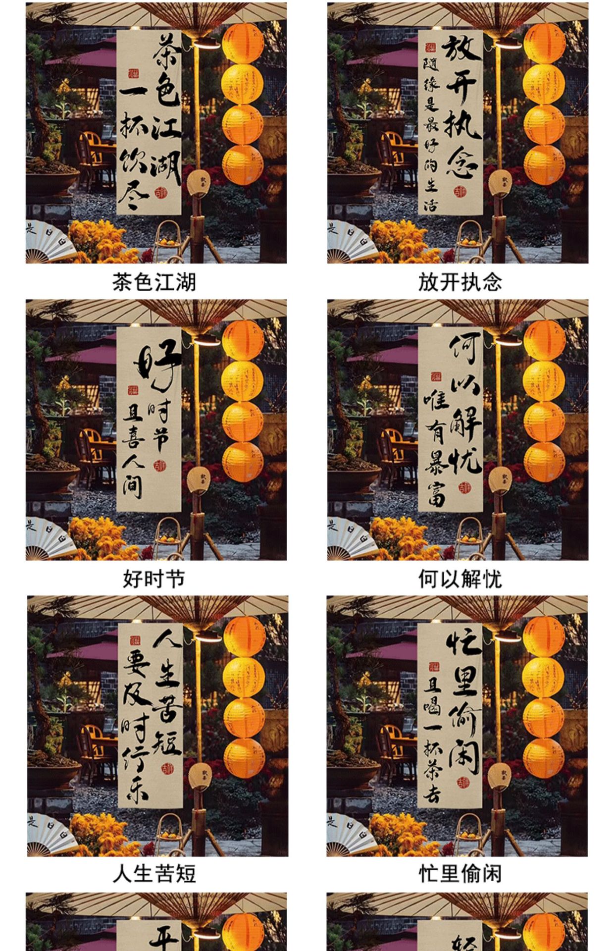围炉煮茶挂布小院户外露营地氛围感装饰中式书法背景摆摊广告墙布