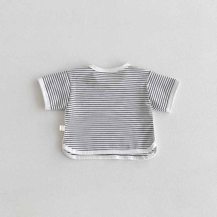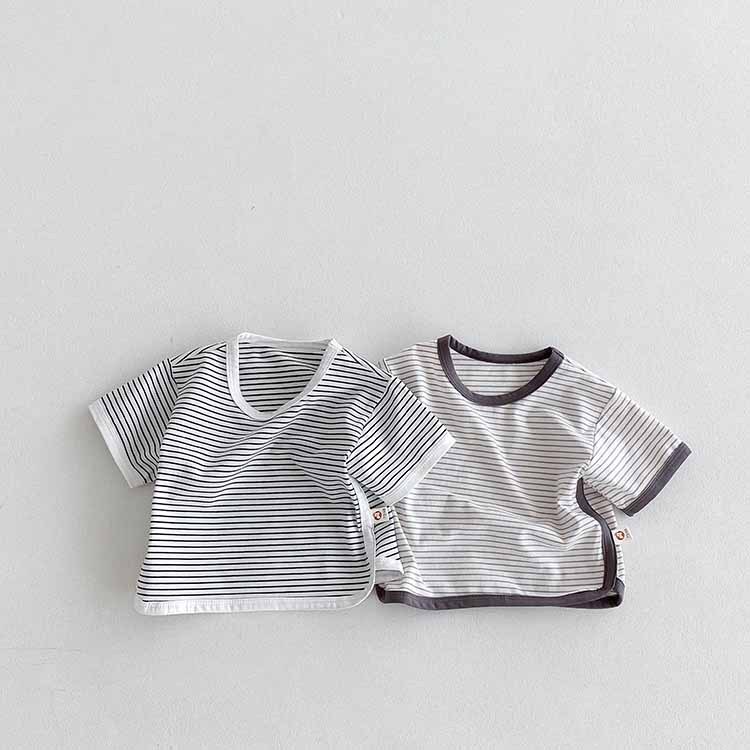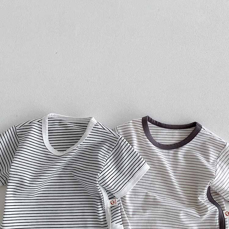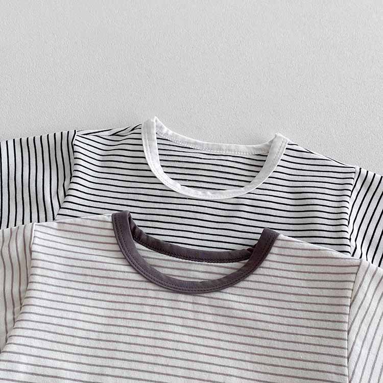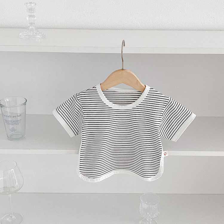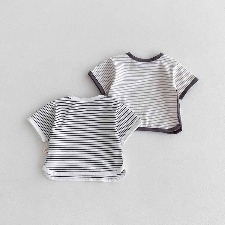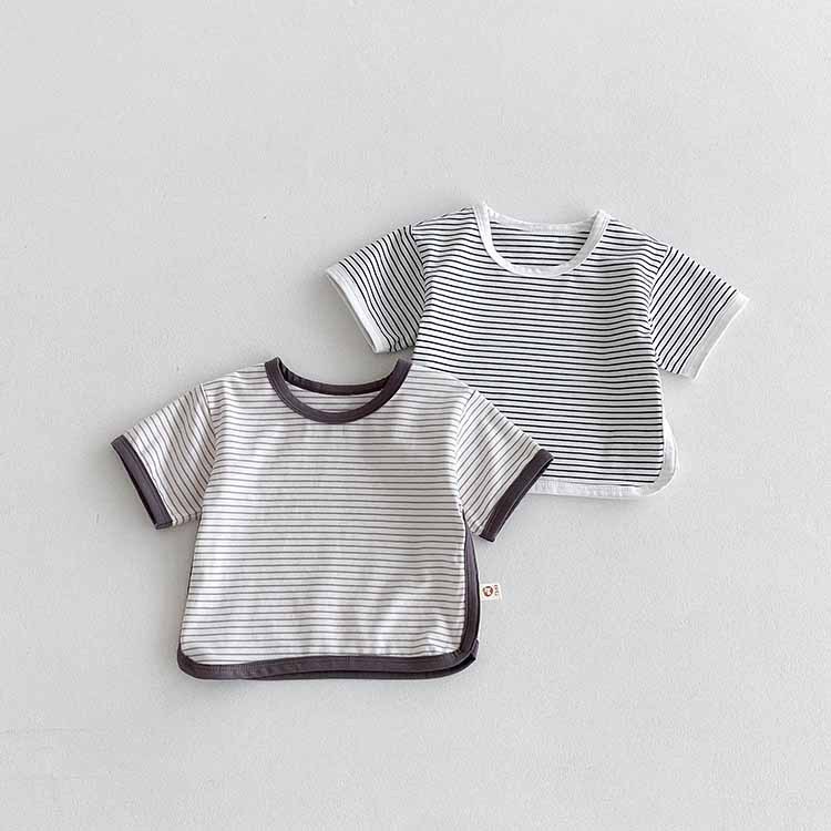 아동용 티셔츠 여름 베이비 반팔 스트라이프 탑 한국 스타일 바닥 셔츠 소년 소녀 캐주얼 티셔츠 아기 옷스토어 가기