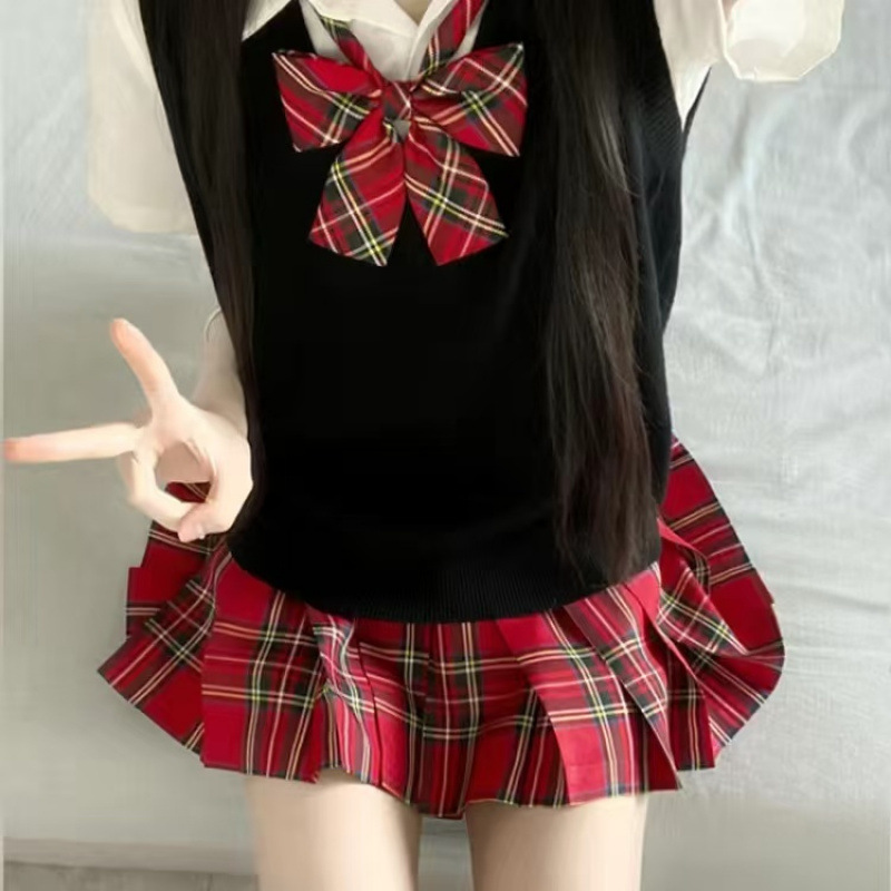봄과 가을 JK 제복 세트 여학생 교복 순수한 욕망 스타일 셔츠 단단한 허리 슬리밍 JK 셔츠 주름 치마 3 조각 세트스토어 가기
