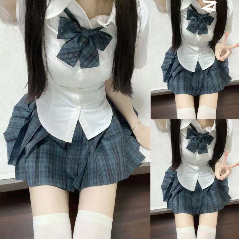 • 허리가 잘록한 흰색 셔츠와 반팔 + 꽁치 나비넥타이 + 꽁치 스커트 3종 세트