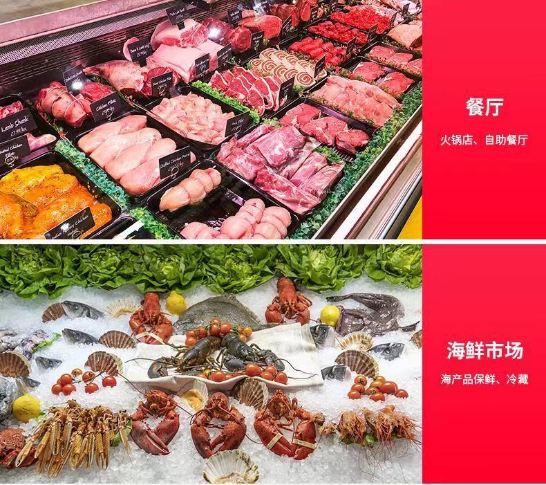 냉장육 진열장, 공냉식 및 신선도 유지, 슈퍼마켓 상업용 조림, 돼지고기, 쇠고기, 양고기, 바비큐, 델리, 과일 냉동고, 수평형스토어 가기
