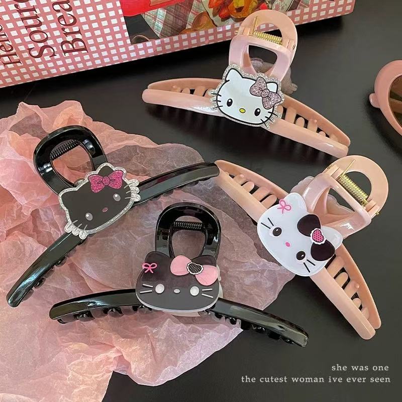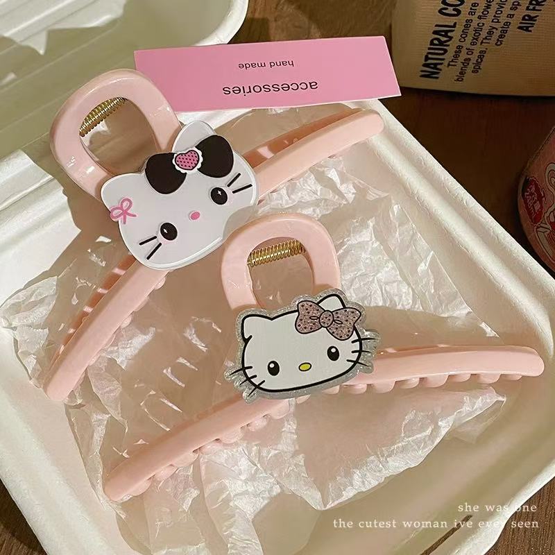 여성용 달콤하고 귀여운 새끼 고양이 머리핀, 머리 뒤쪽 머리핀, 대형 고급 상어 클립 머리핀, 여름 모자