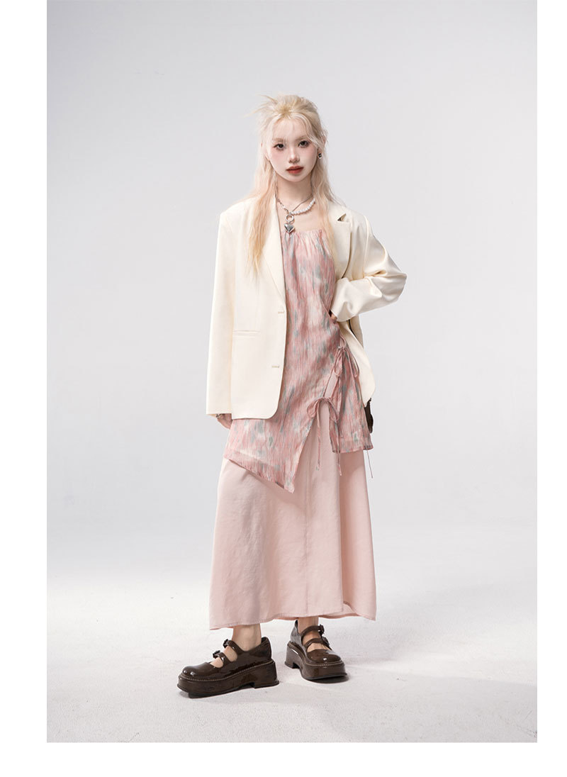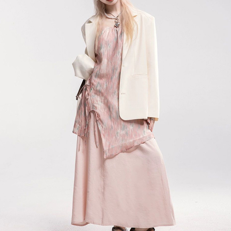 여성용 디자인 슈트 여름 스트랩 솔리드 컬러 얇은 블레이저 캐미솔 탑 캐주얼 하프 길이 스커트 3 피스 세트
