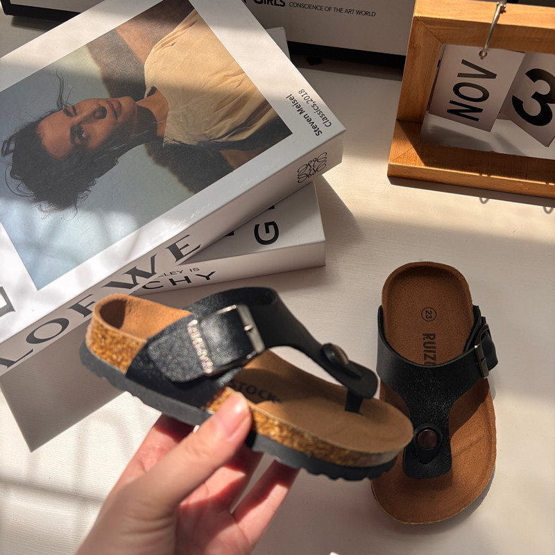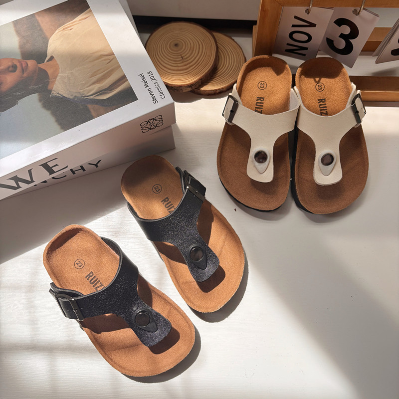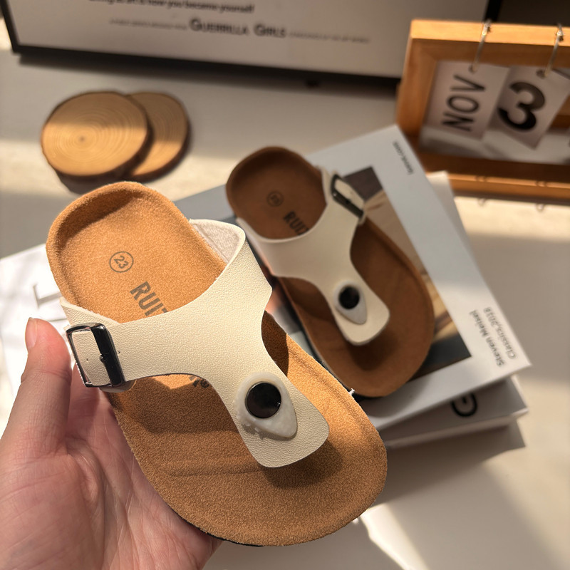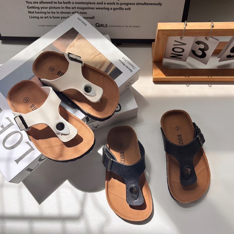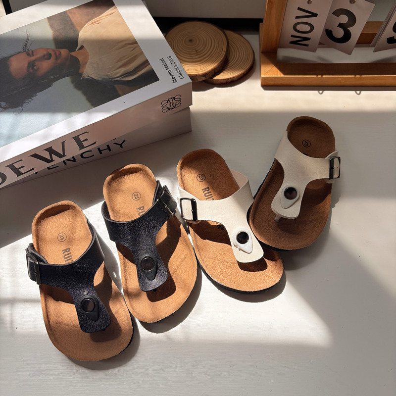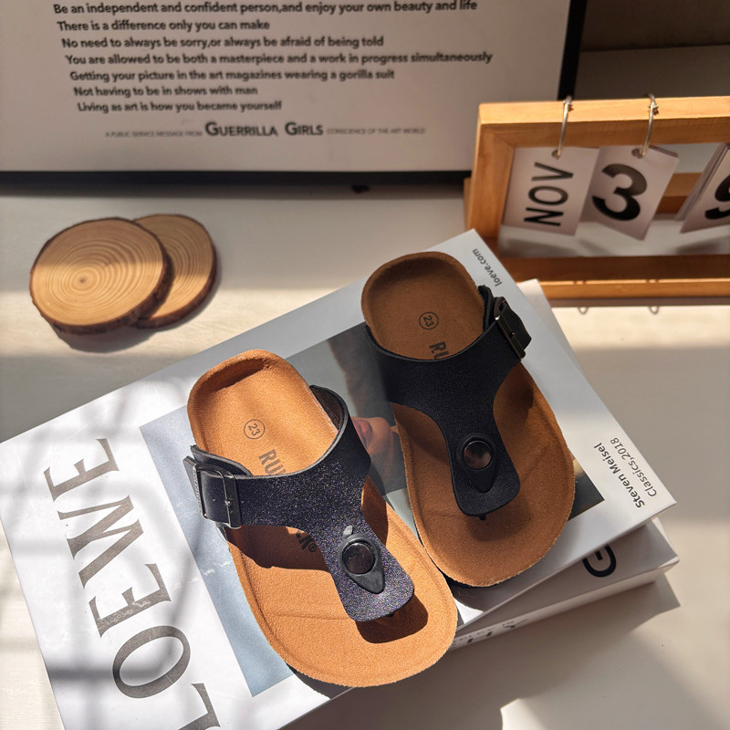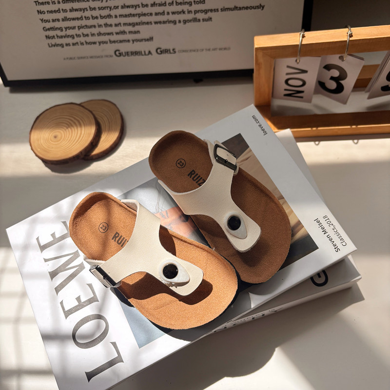 2025 여름 어린이 코르크 슬리퍼 유행 소년과 소녀 한국 스타일 샌들 슬리퍼 아기 Boken 비치 신발스토어 가기