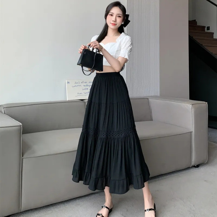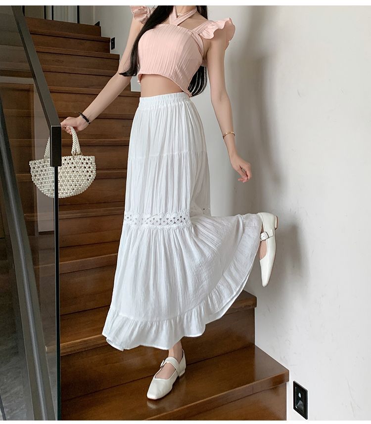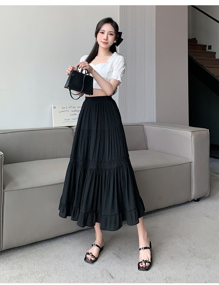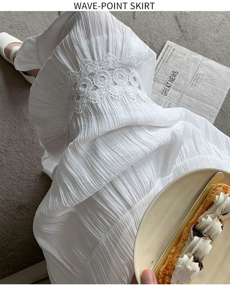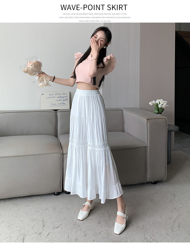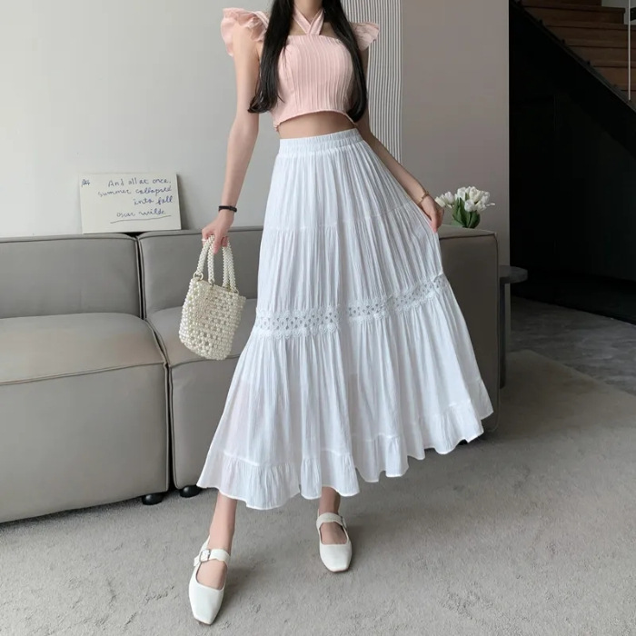 프렌치 레이스 봄 여름 중공 화이트 스커트 2025 새로운 하이 웨이스트 슬림 롱 스커트 케이크 스커트