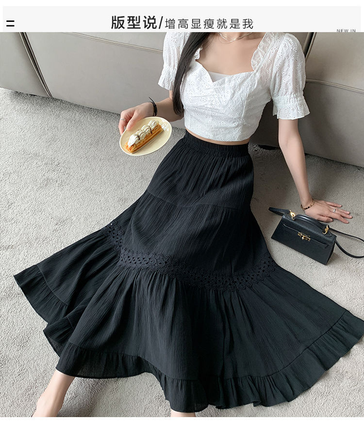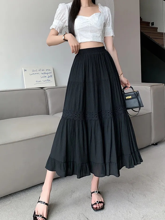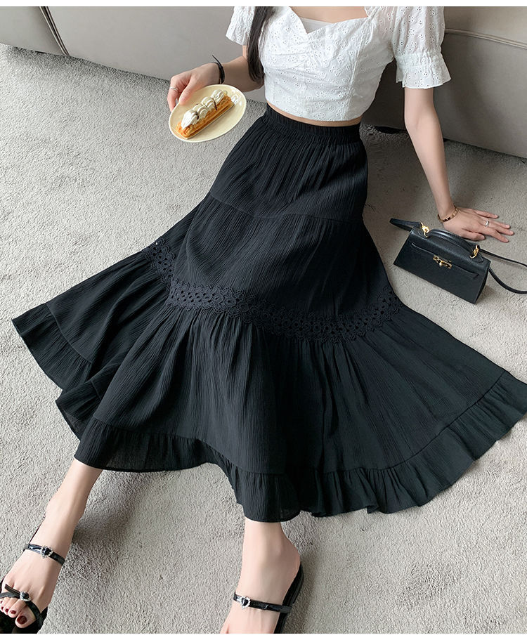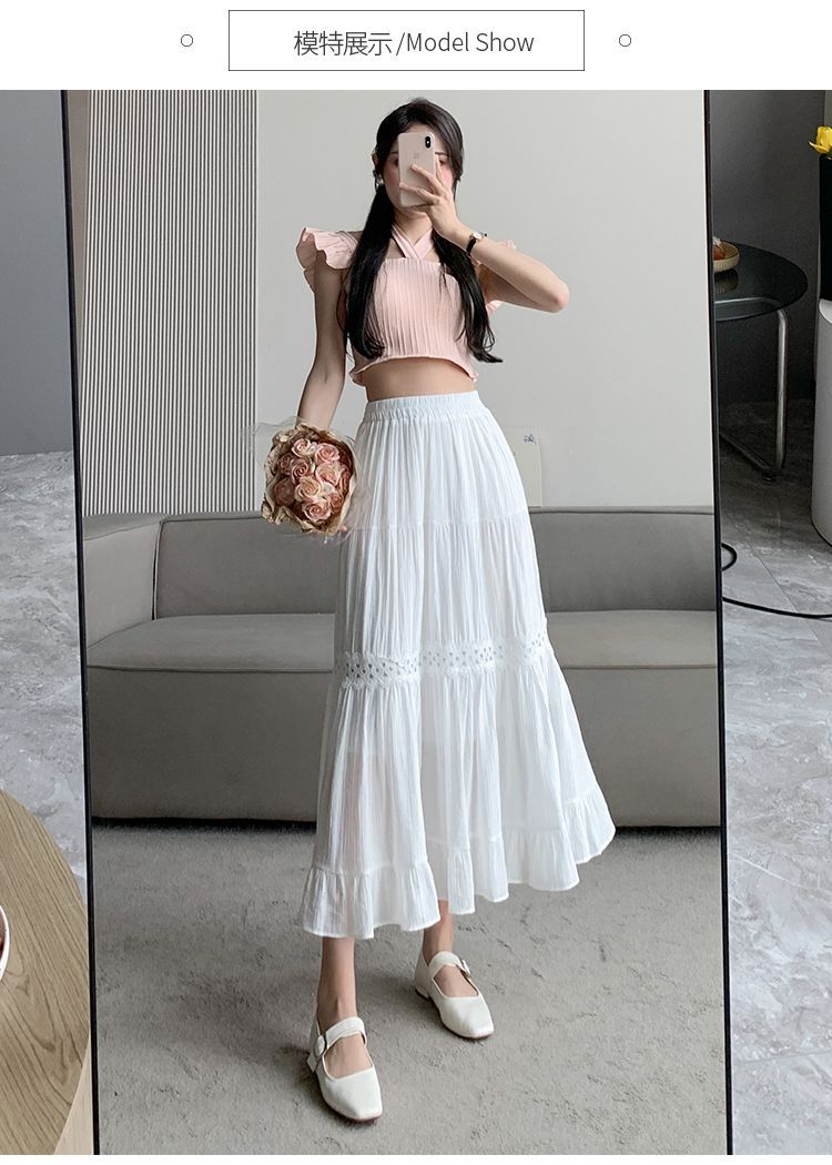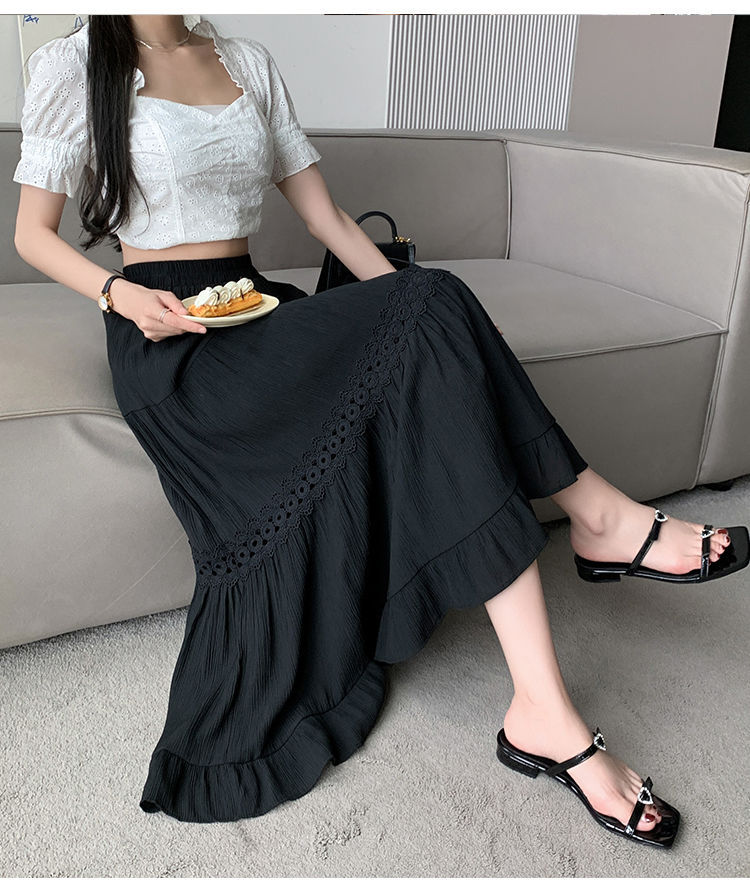 프렌치 레이스 봄 여름 중공 화이트 스커트 2025 새로운 하이 웨이스트 슬림 롱 스커트 케이크 스커트