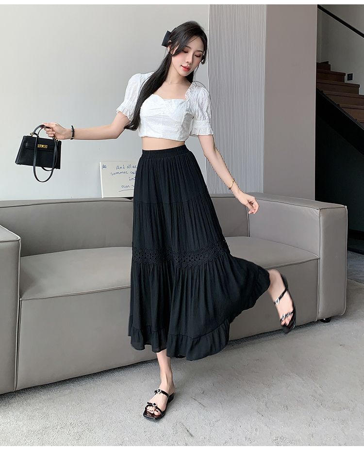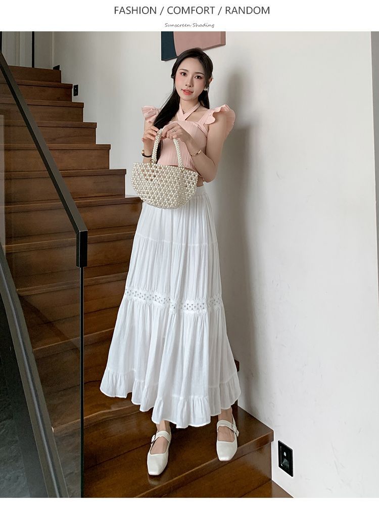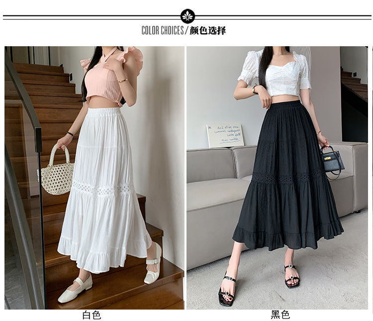 프렌치 레이스 봄 여름 중공 화이트 스커트 2025 새로운 하이 웨이스트 슬림 롱 스커트 케이크 스커트스토어 가기