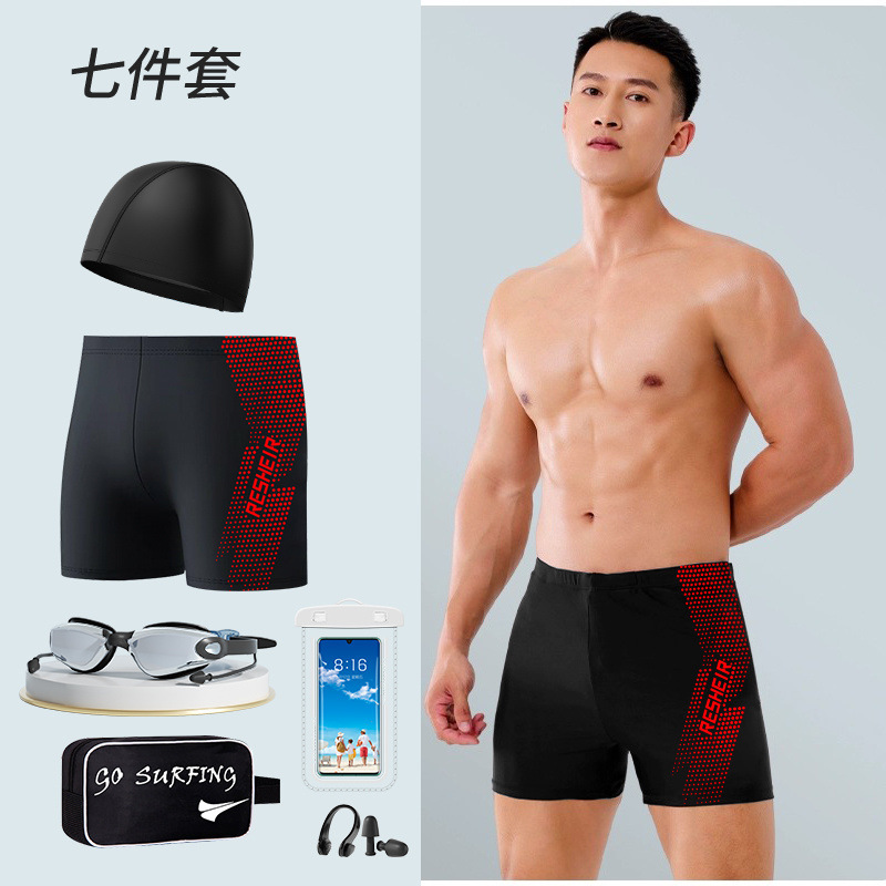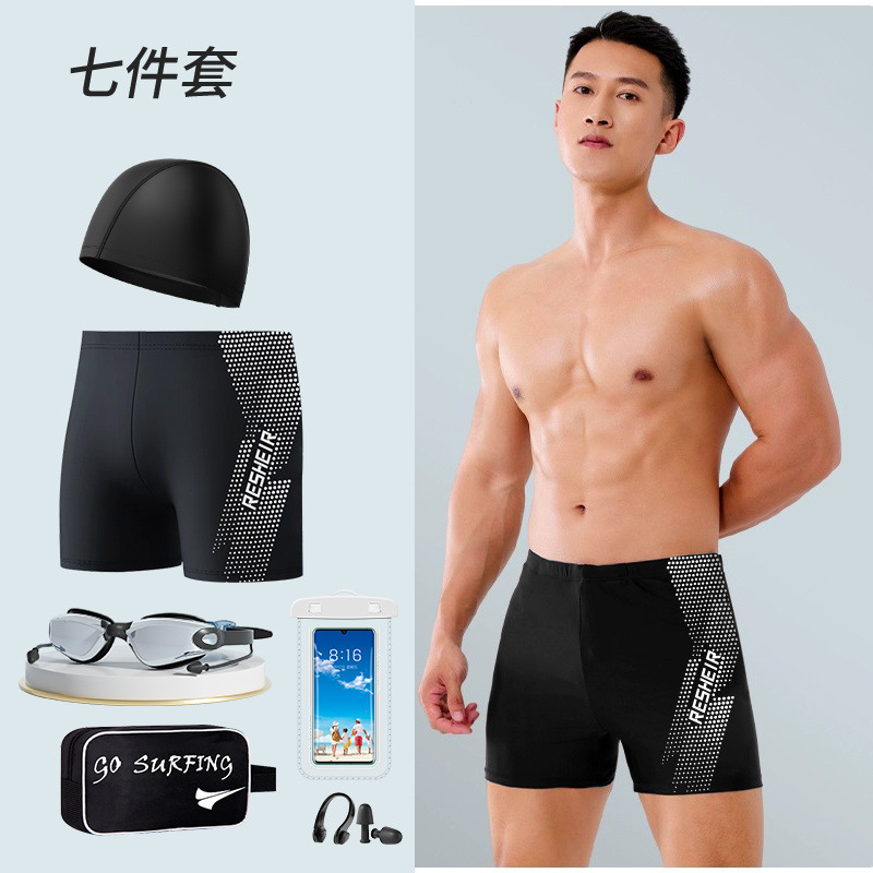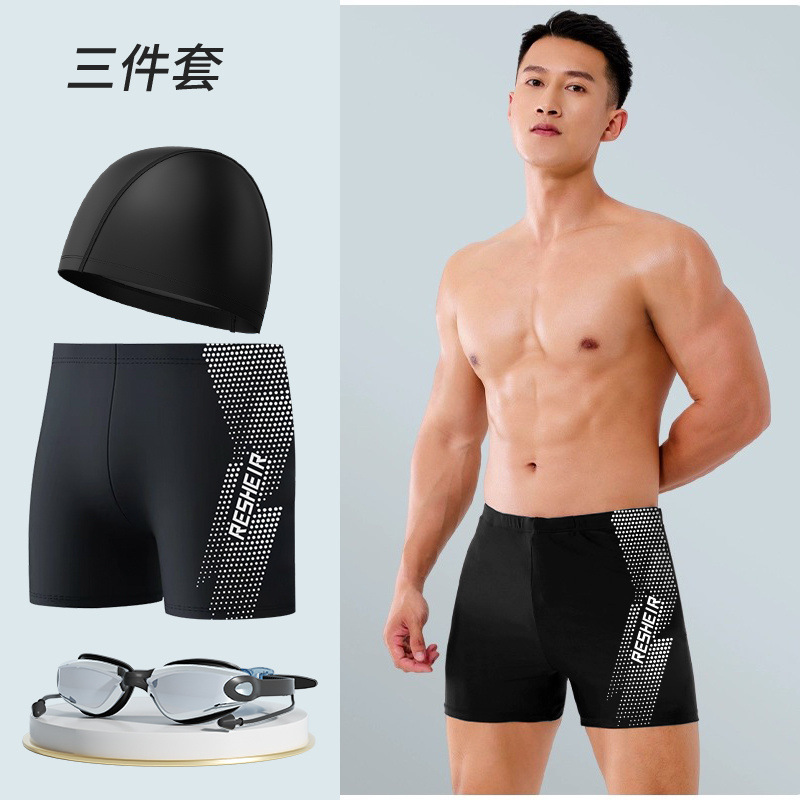 남성용 수영 팬티, 성인용 당황 방지 플러스 사이즈 복서 수영 팬티, 수영 고글 및 수영 모자 세트, 온천 속건 남성용 수영복스토어 가기