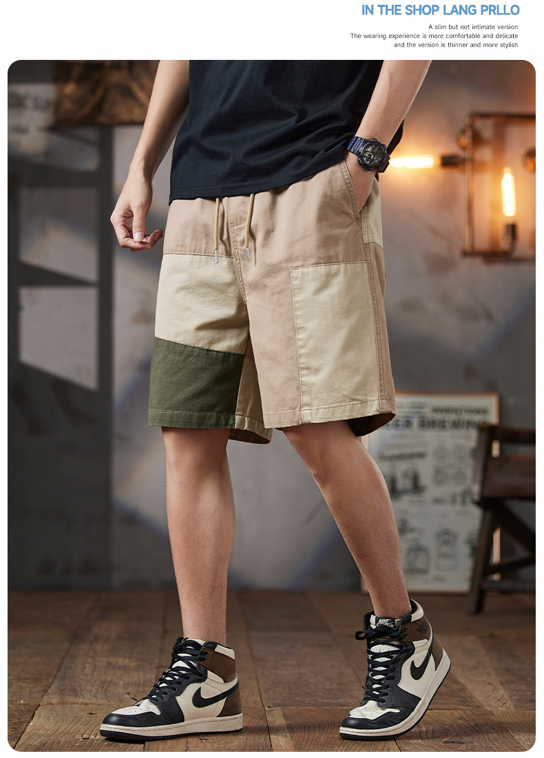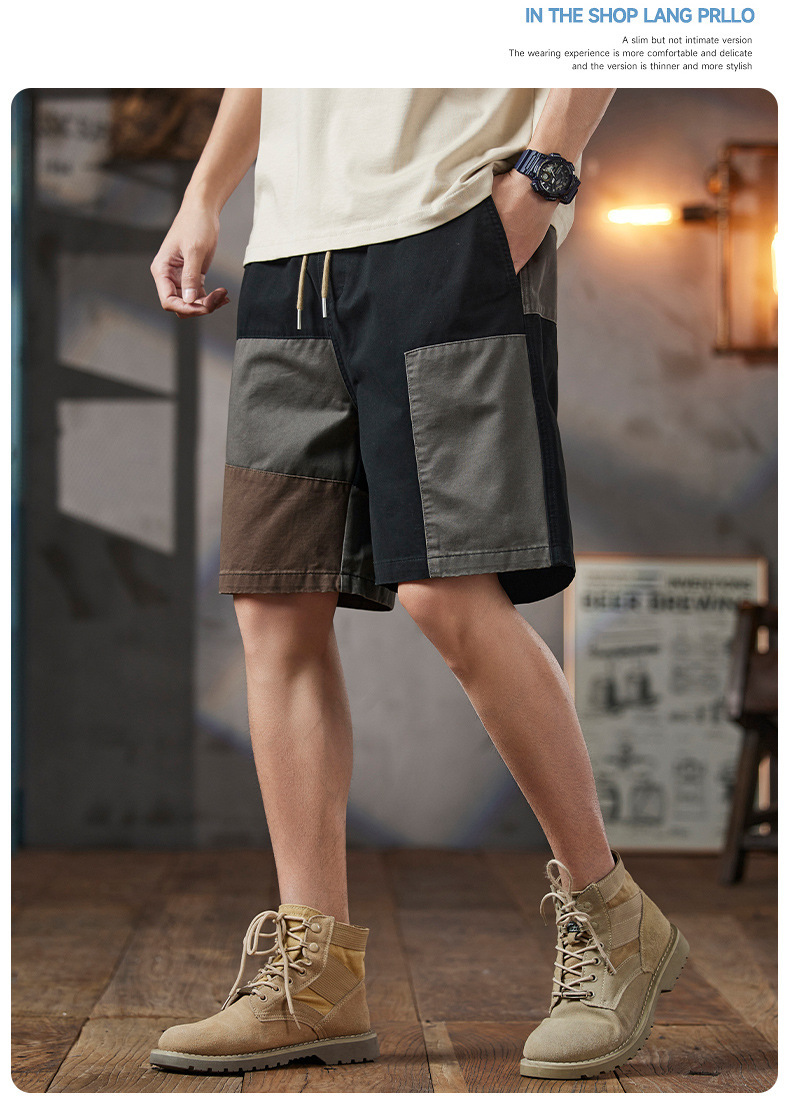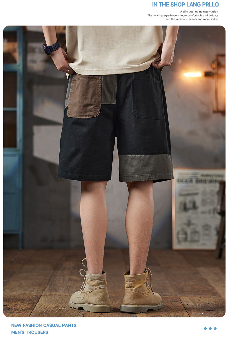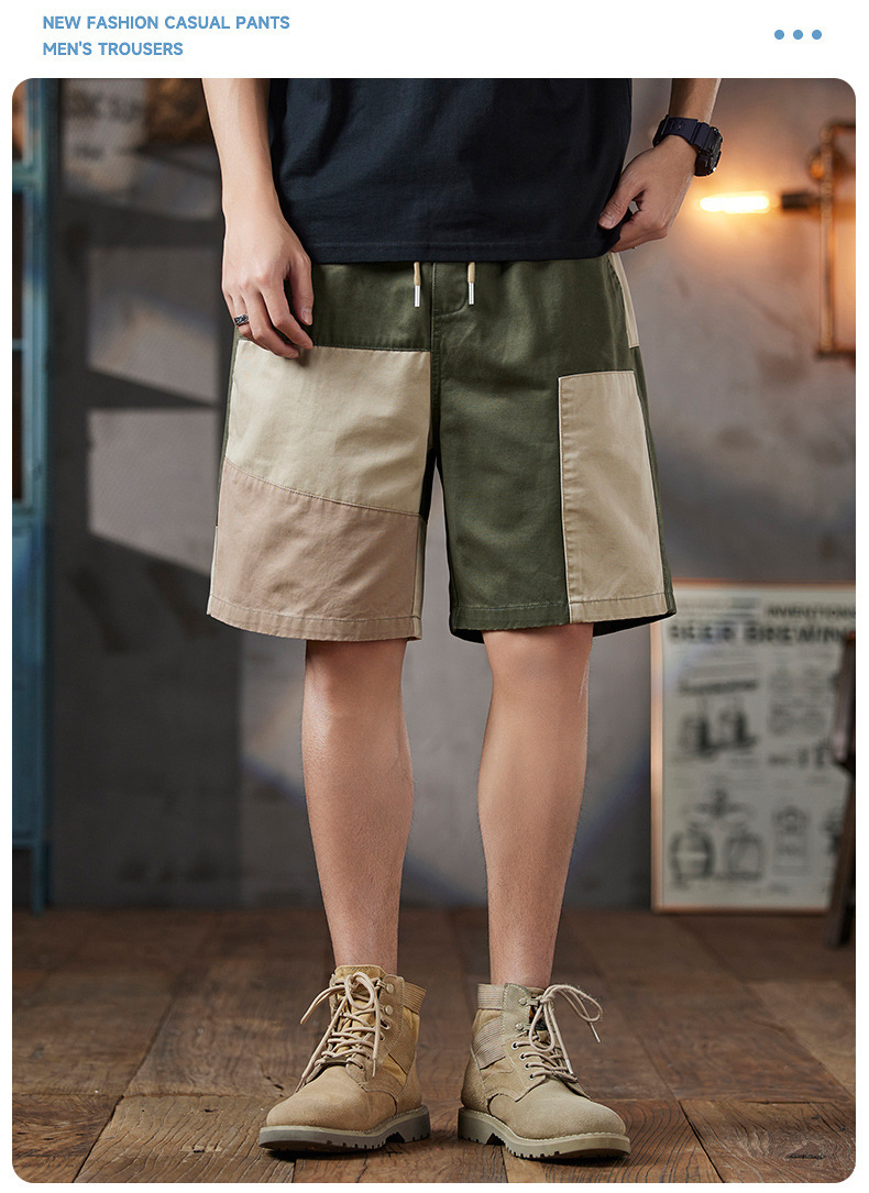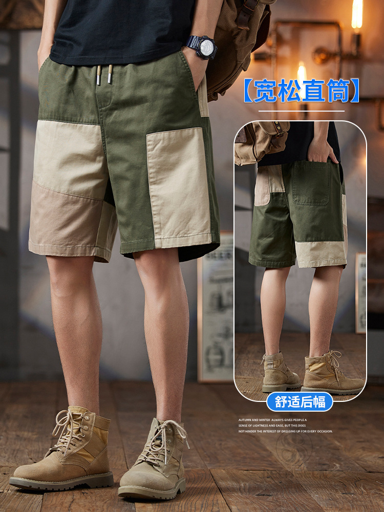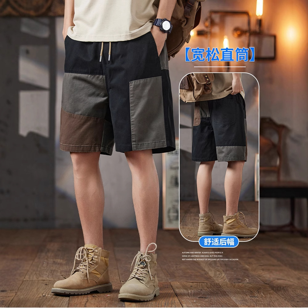 남성용 여름 솔리드 컬러 캐주얼 반바지 2025 남성용 새로운 루즈한 5부 바지 트렌디하고 다재다능한 스플라이스 워크웨어 미드팬츠