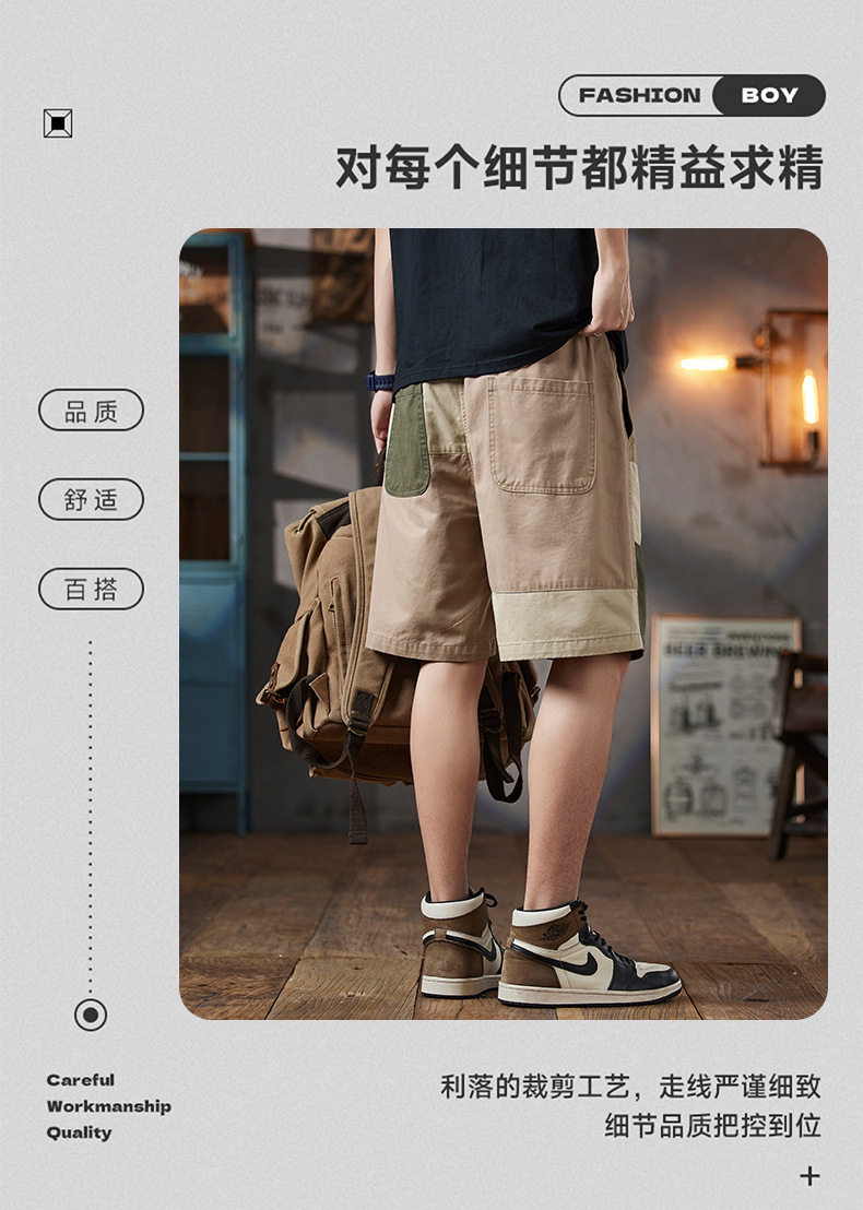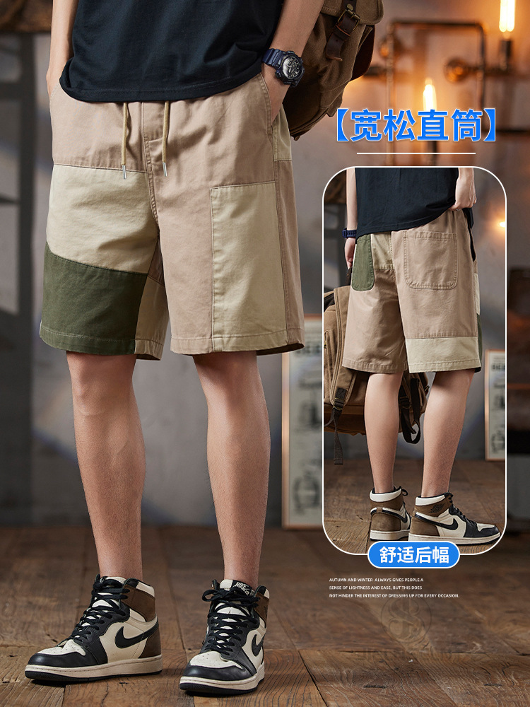 남성용 여름 솔리드 컬러 캐주얼 반바지 2025 남성용 새로운 루즈한 5부 바지 트렌디하고 다재다능한 스플라이스 워크웨어 미드팬츠스토어 가기
