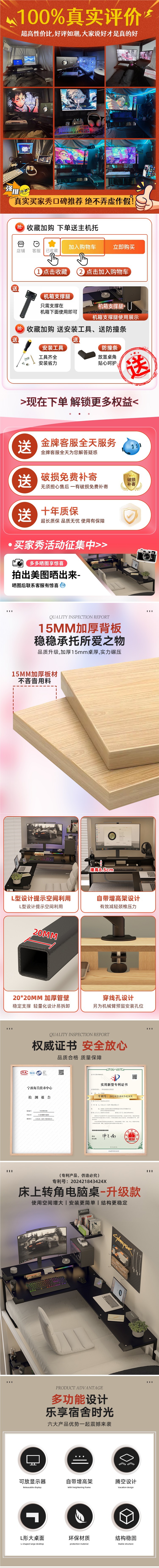 침대 위에 매달린 컴퓨터 책상 코너 테이블 대학생 기숙사 유물 침실 e-스포츠 테이블 데스크탑 컴퓨터 책상 게으른 사람스토어 가기