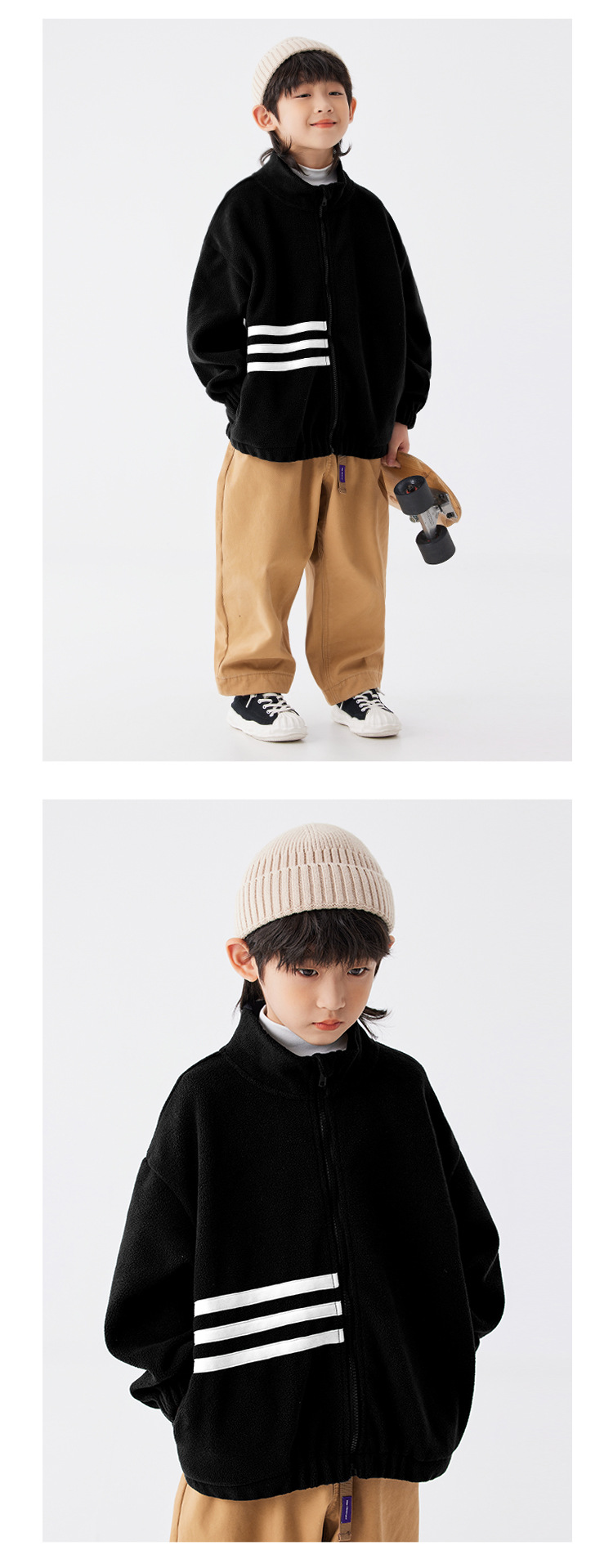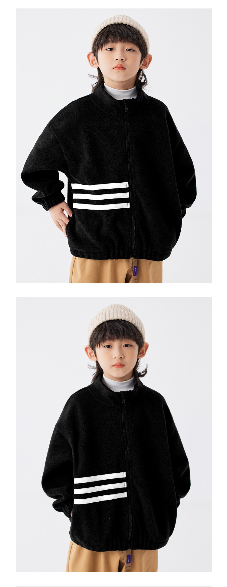 EK 아동복 TB 세 줄무늬 소년 루즈 자켓 맞춤형 중대형 아동용 폴라 플리스 따뜻한 탑 트렌디 브랜드스토어 가기