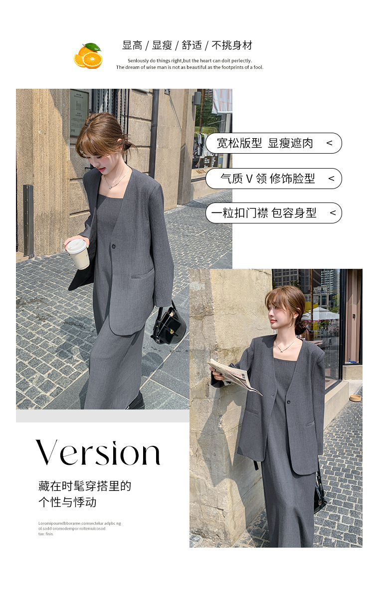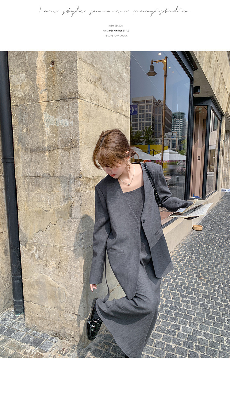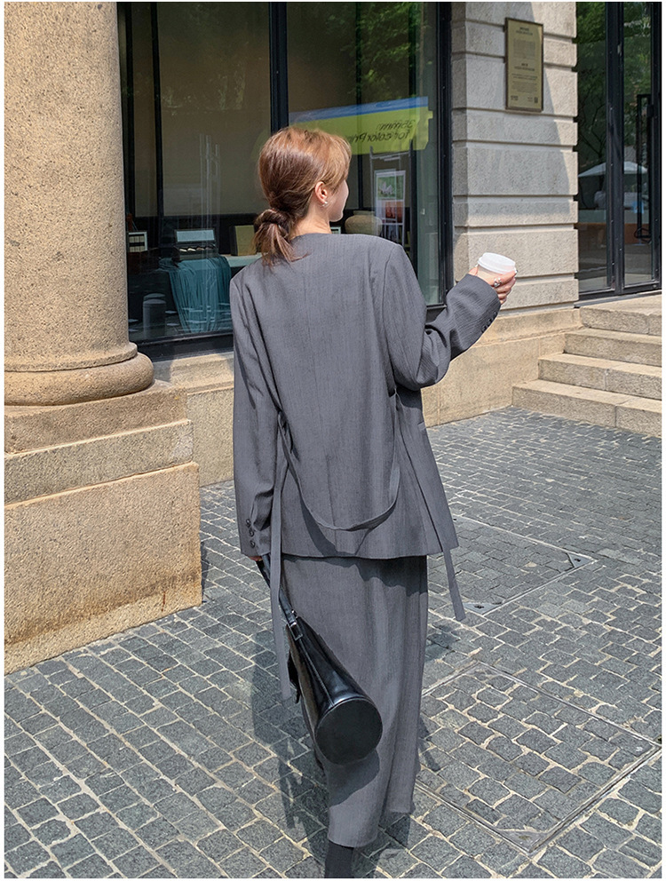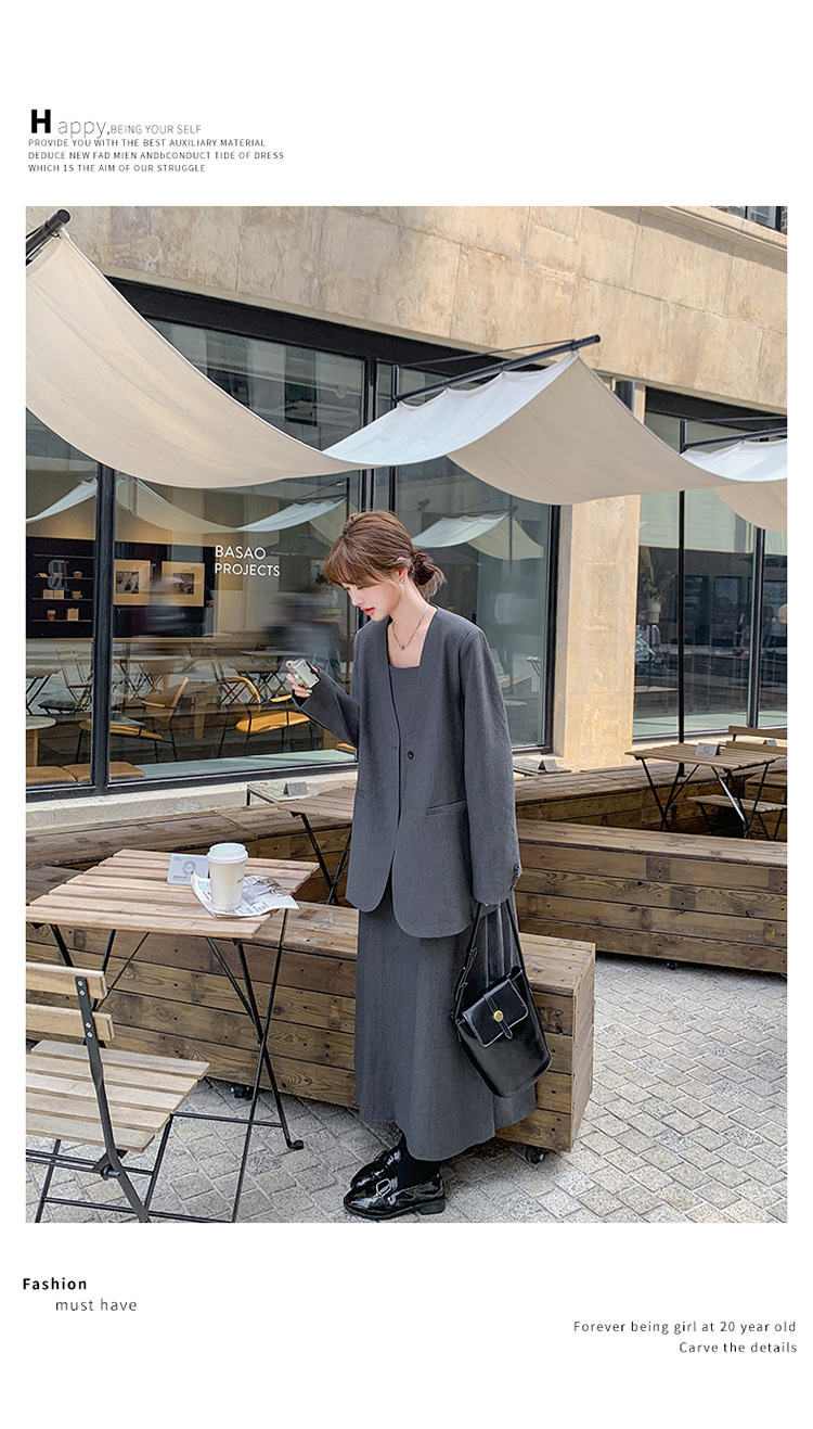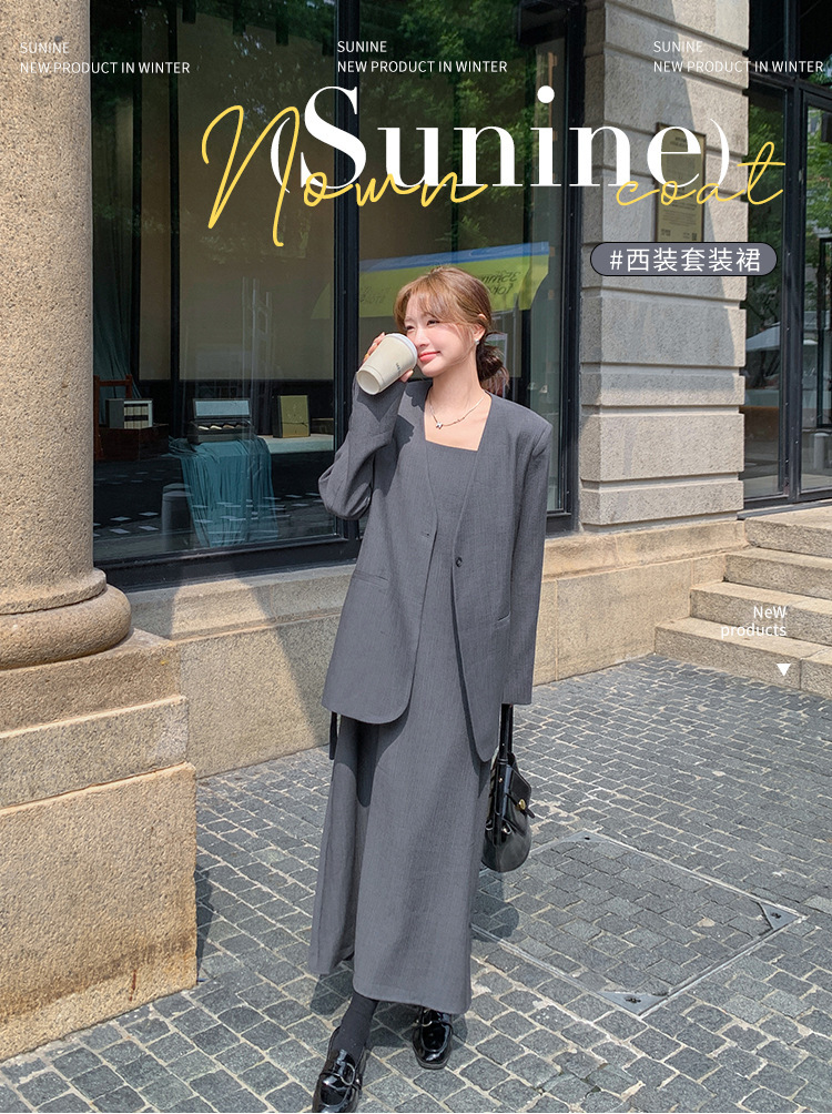 여성을위한 회색 한국 고급 정장 서스펜더 스커트 정장 봄, 가을 2025 새로운 통근 기질 정장 투피스 세트