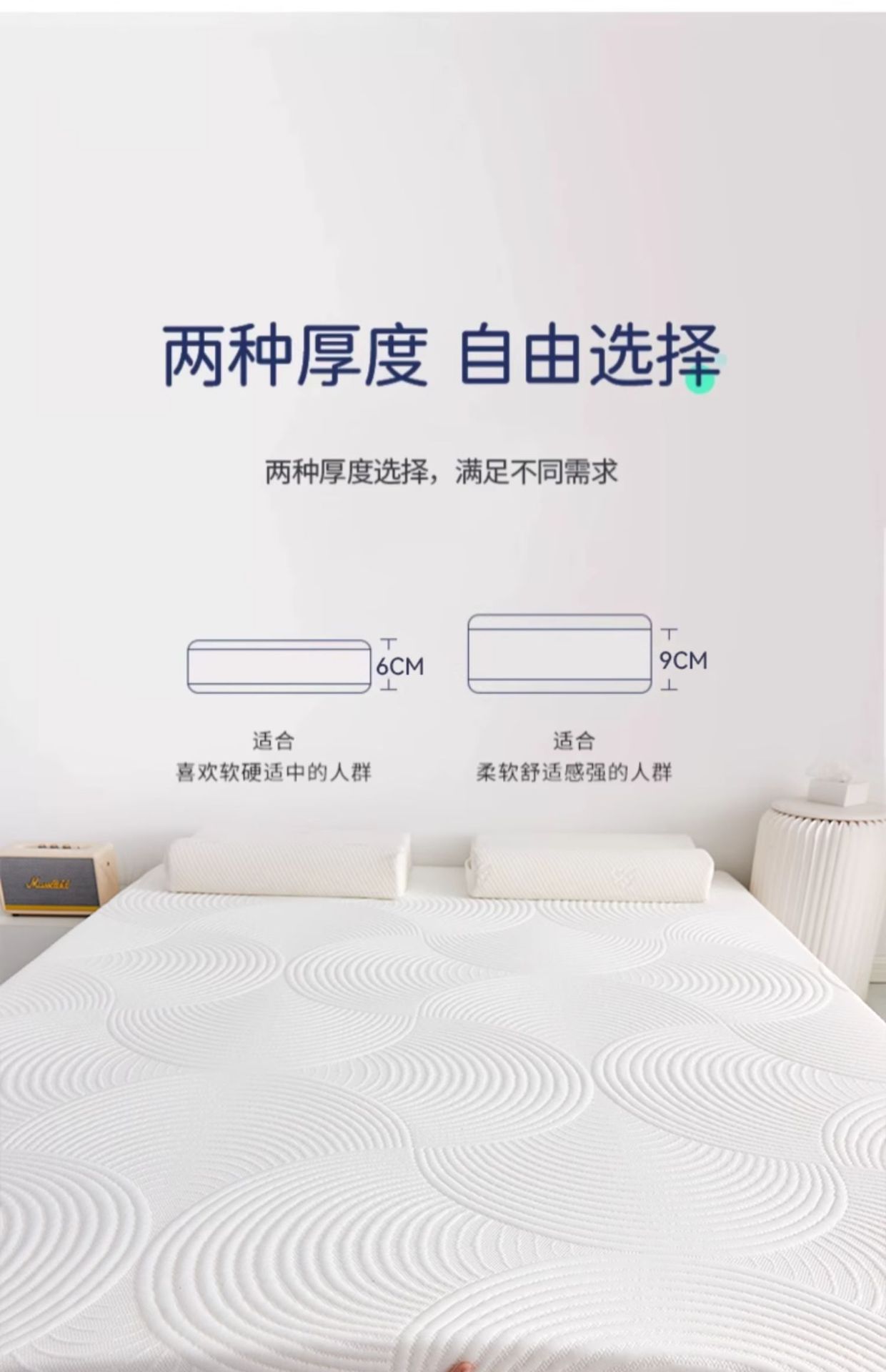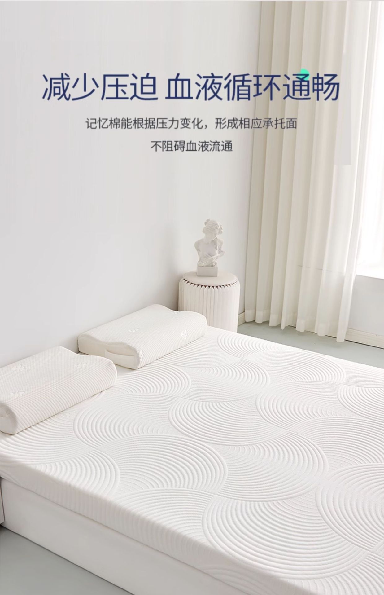 • 둥근 흰색, 약 6cm [척추를 보호하고 압력을 완화하며 장기간 수면 후에도 무너지지 않음]