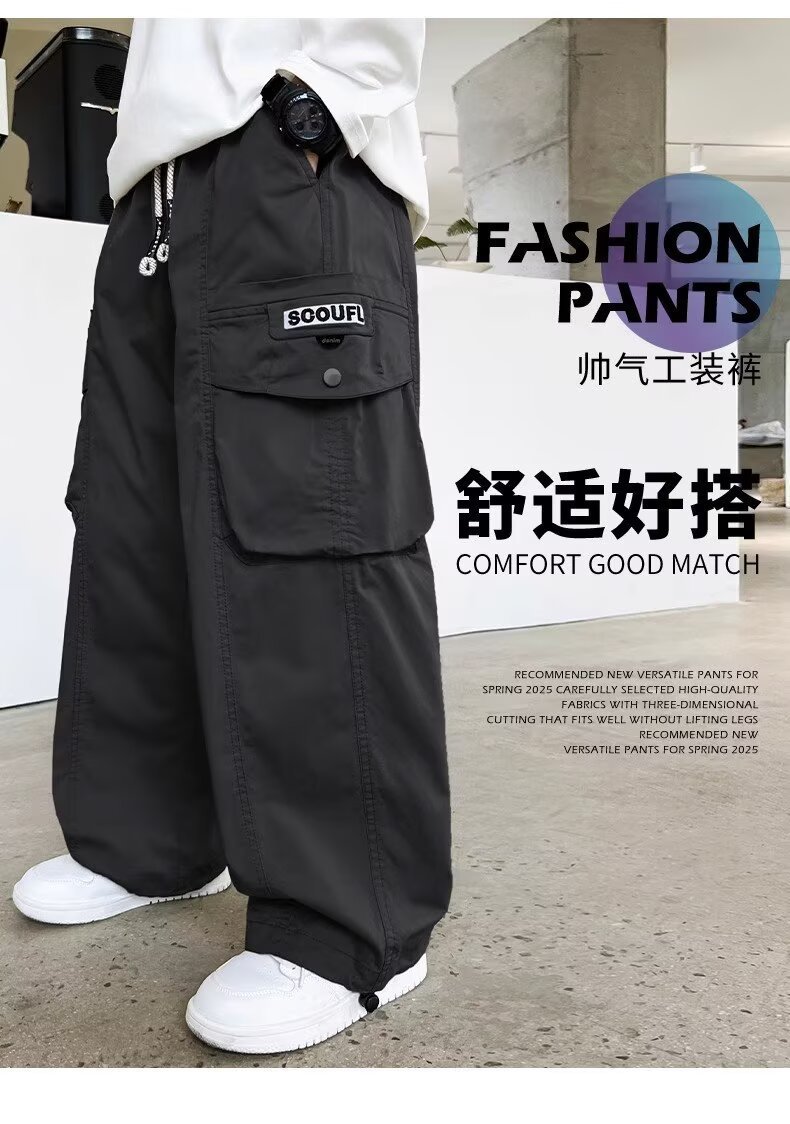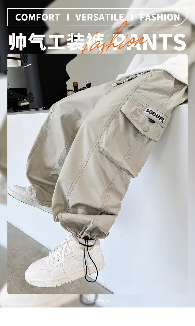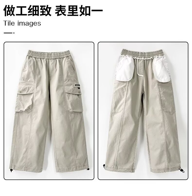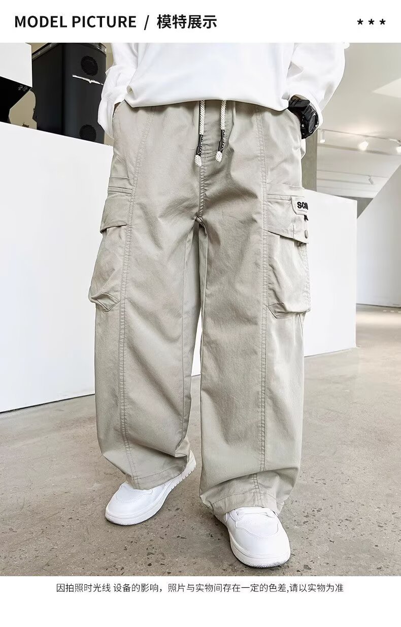 아동복 남아 여름 작업복 바지 봄, 가을, 여름 2026년 신상 얇은 여름 캐주얼 큰아동 모기 방지 바지