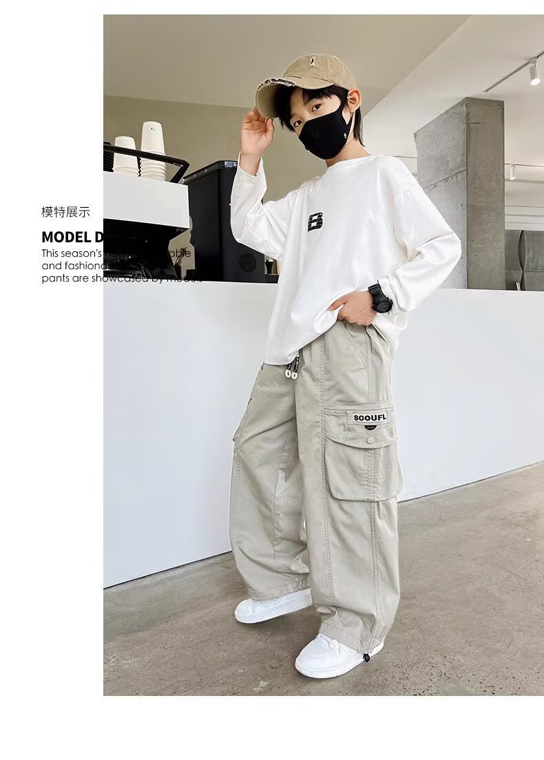 아동복 남아 여름 작업복 바지 봄, 가을, 여름 2026년 신상 얇은 여름 캐주얼 큰아동 모기 방지 바지스토어 가기