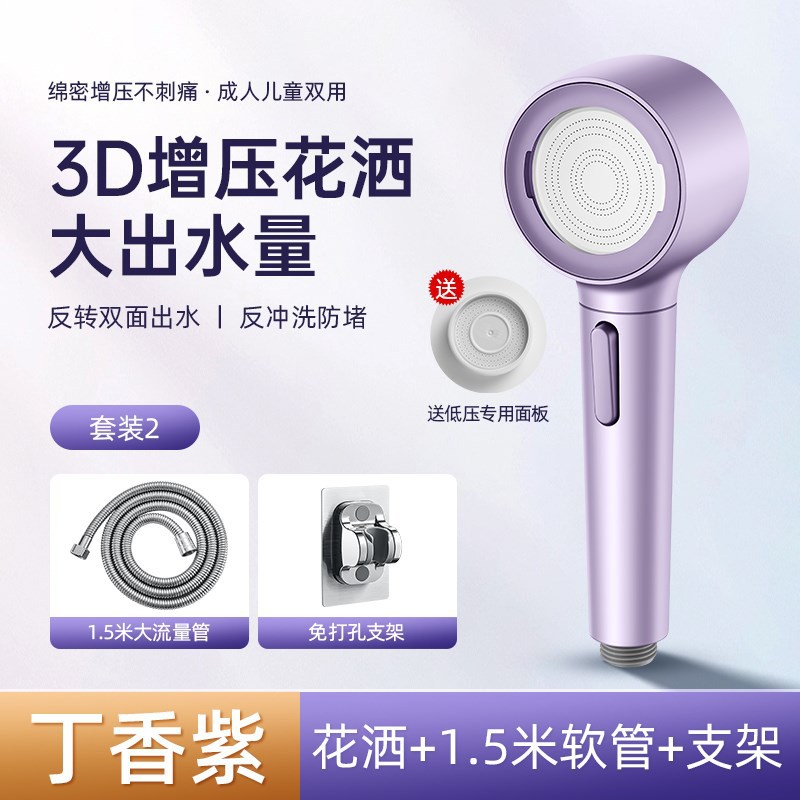 • [라일락 퍼플 세트] 3D 강력 슈퍼차저 샤워기 + 대형 흐름 튜브 2m개 + 브래킷