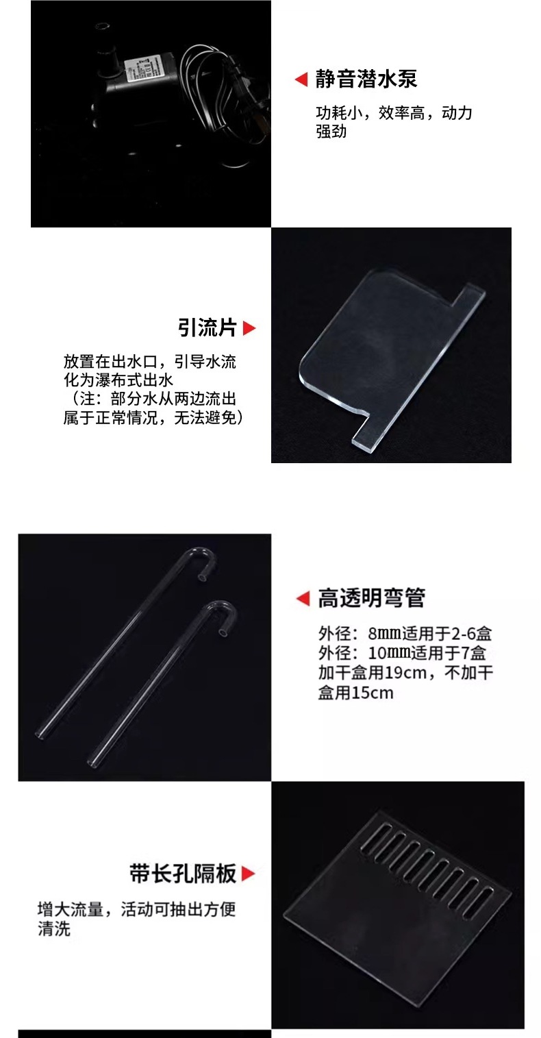 • 6박스 + 필터 액세서리 + 드라이 박스 + 8W 워터 펌프 + 드라이 박스 커버