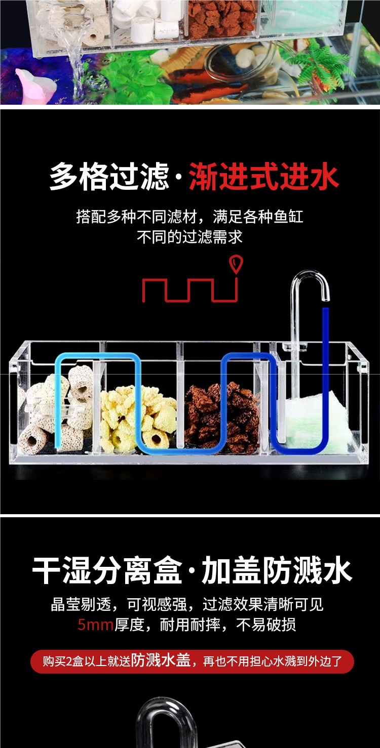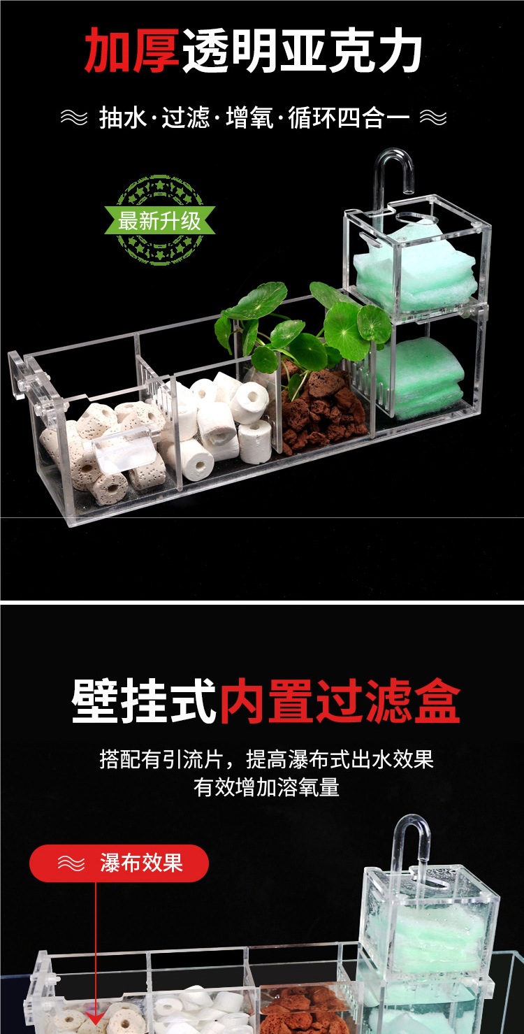 수조 필터 소형 순환 정수기 3-in-1 드립 박스 내장 상단 아크릴 벽걸이 필터 박스