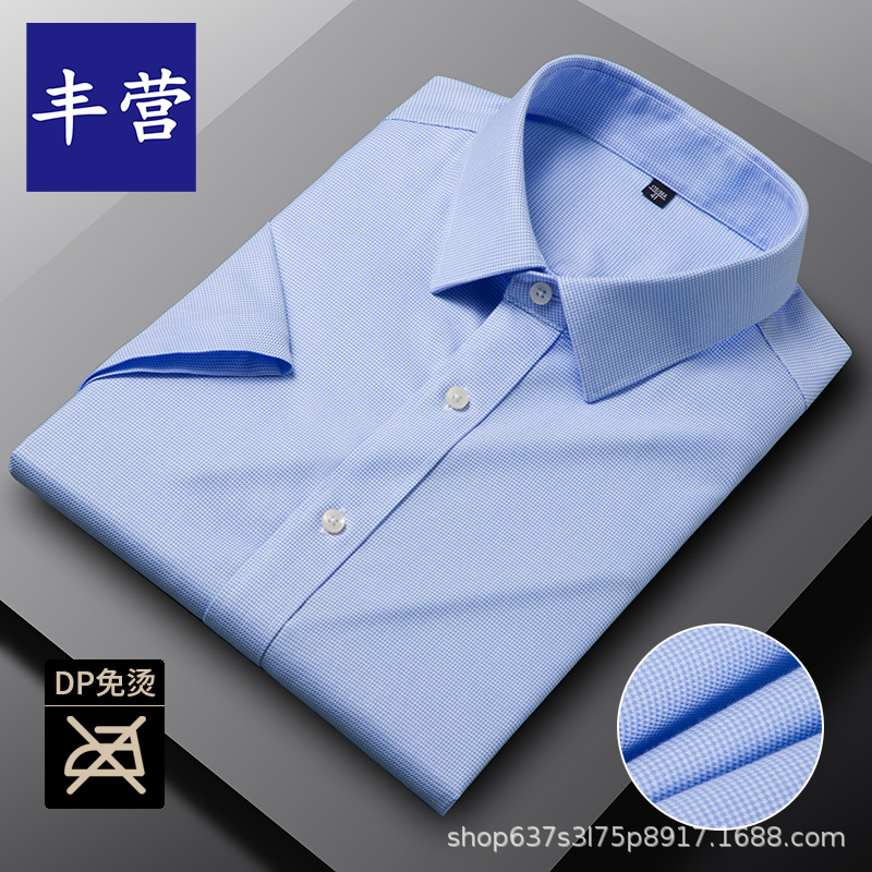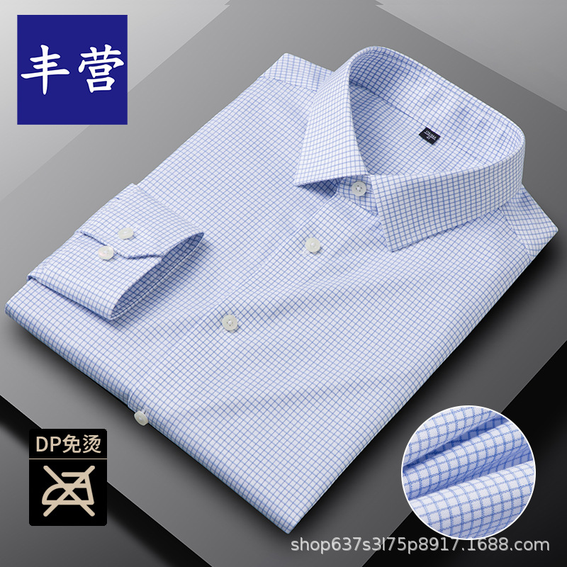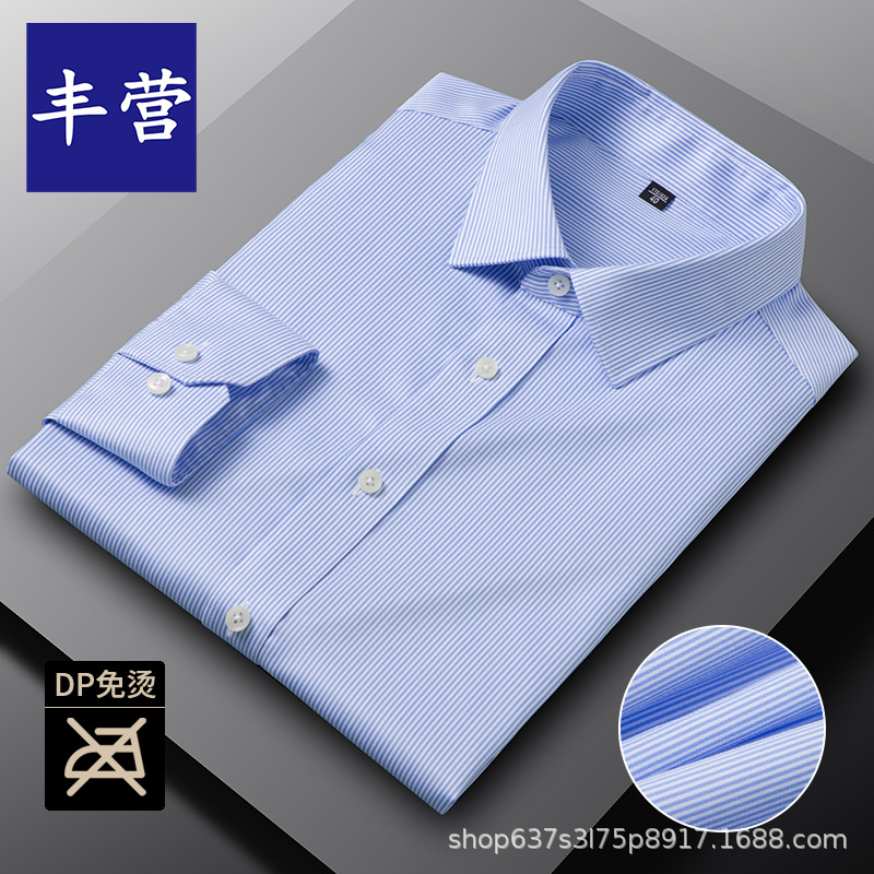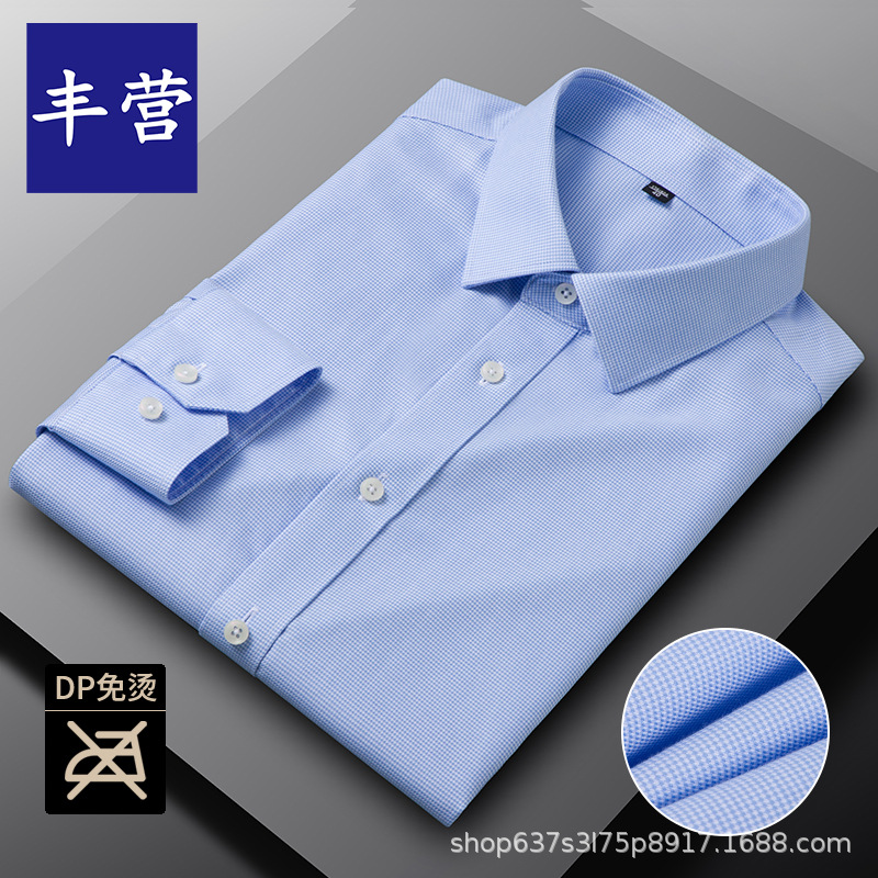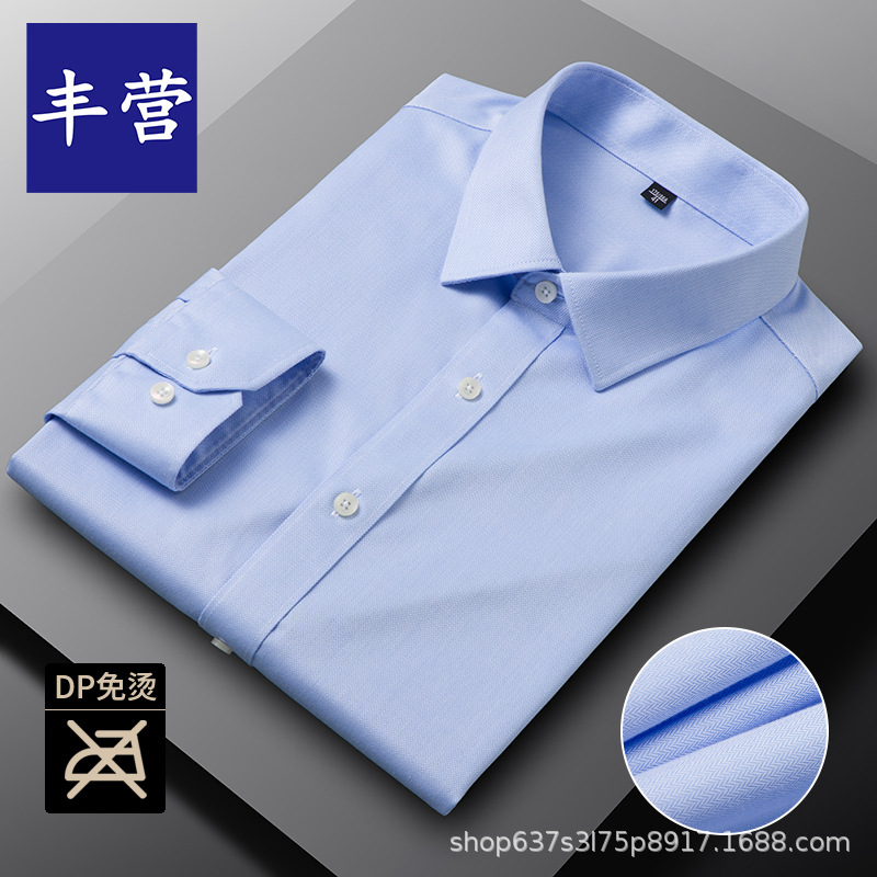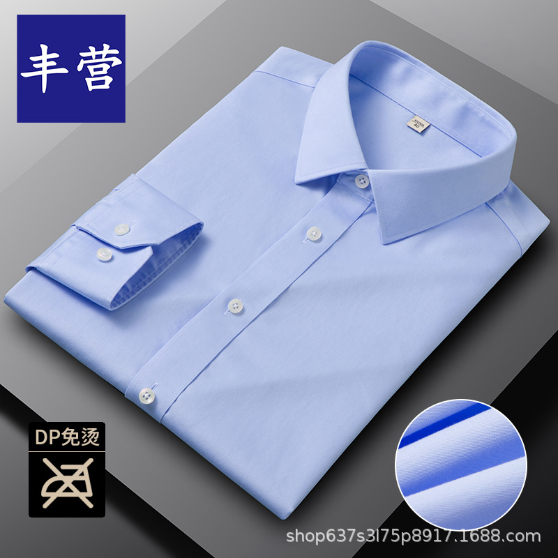 남성용 면 셔츠 DP 기성품 노아이론 전문 작업복 비즈니스 블루 셔츠 캐주얼 주름 방지 캐주얼 긴팔스토어 가기