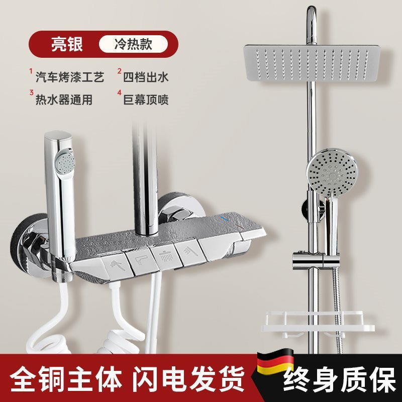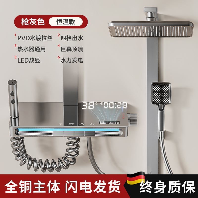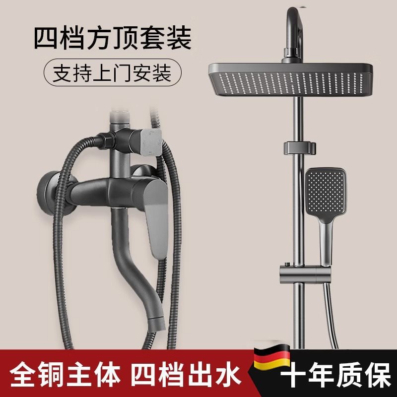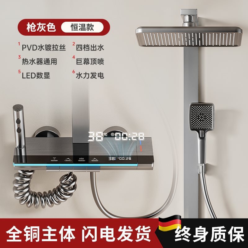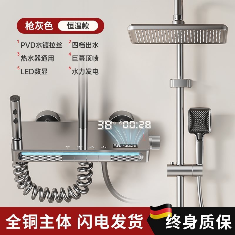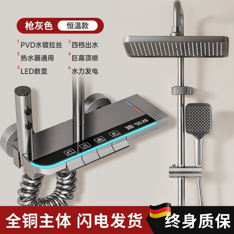 샤워 헤드 세트 건 그레이 전체 구리 샤워 헤드 가정용 항온 부스터 노즐 욕실 레인 샤워