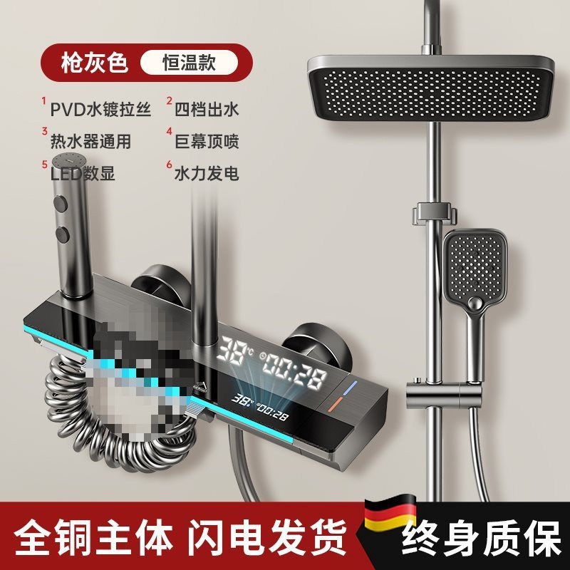 샤워 헤드 세트 건 그레이 전체 구리 샤워 헤드 가정용 항온 부스터 노즐 욕실 레인 샤워스토어 가기