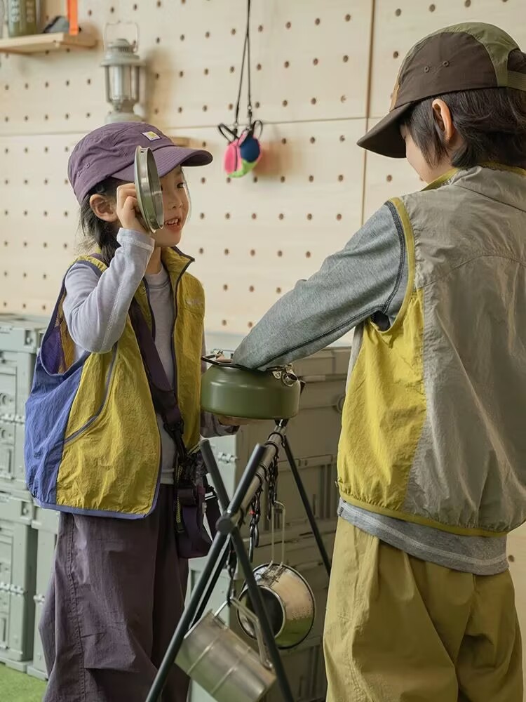 어린이 조끼 봄 새로운 스타일 소년과 소녀 야외 경량 속건성 발수 조끼 대비 색상 봄과 여름 옷 부모-자식 스타일스토어 가기