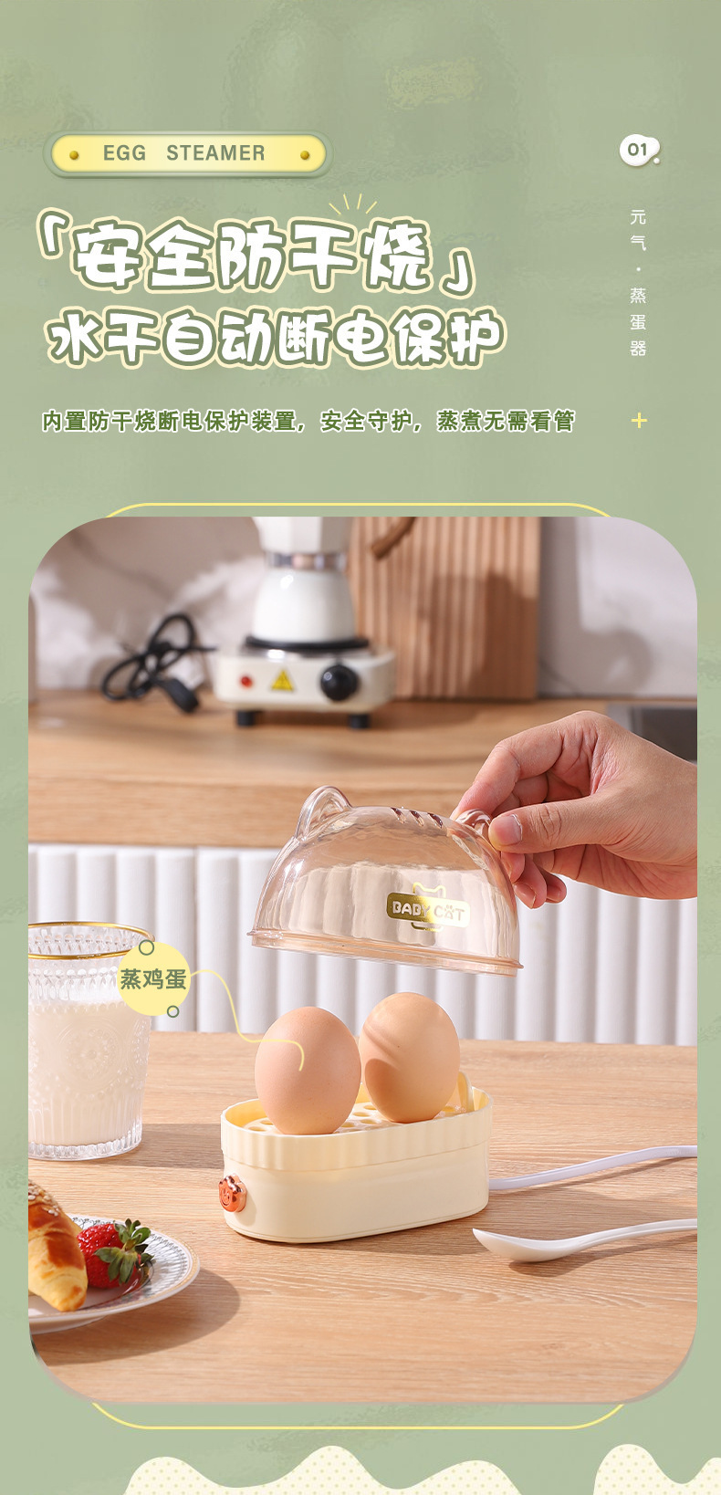 빠른 광장 계란 보일러 가정용 작은 계란 끓는 자동 계란 끓는 작은 냄비 한 사람 타이밍