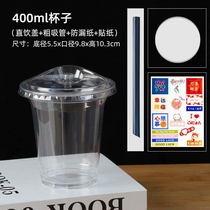 • 14oz PET컵 + 직접 마시는 뚜껑 + 누수방지지 + 스티커 + [가는 빨대]