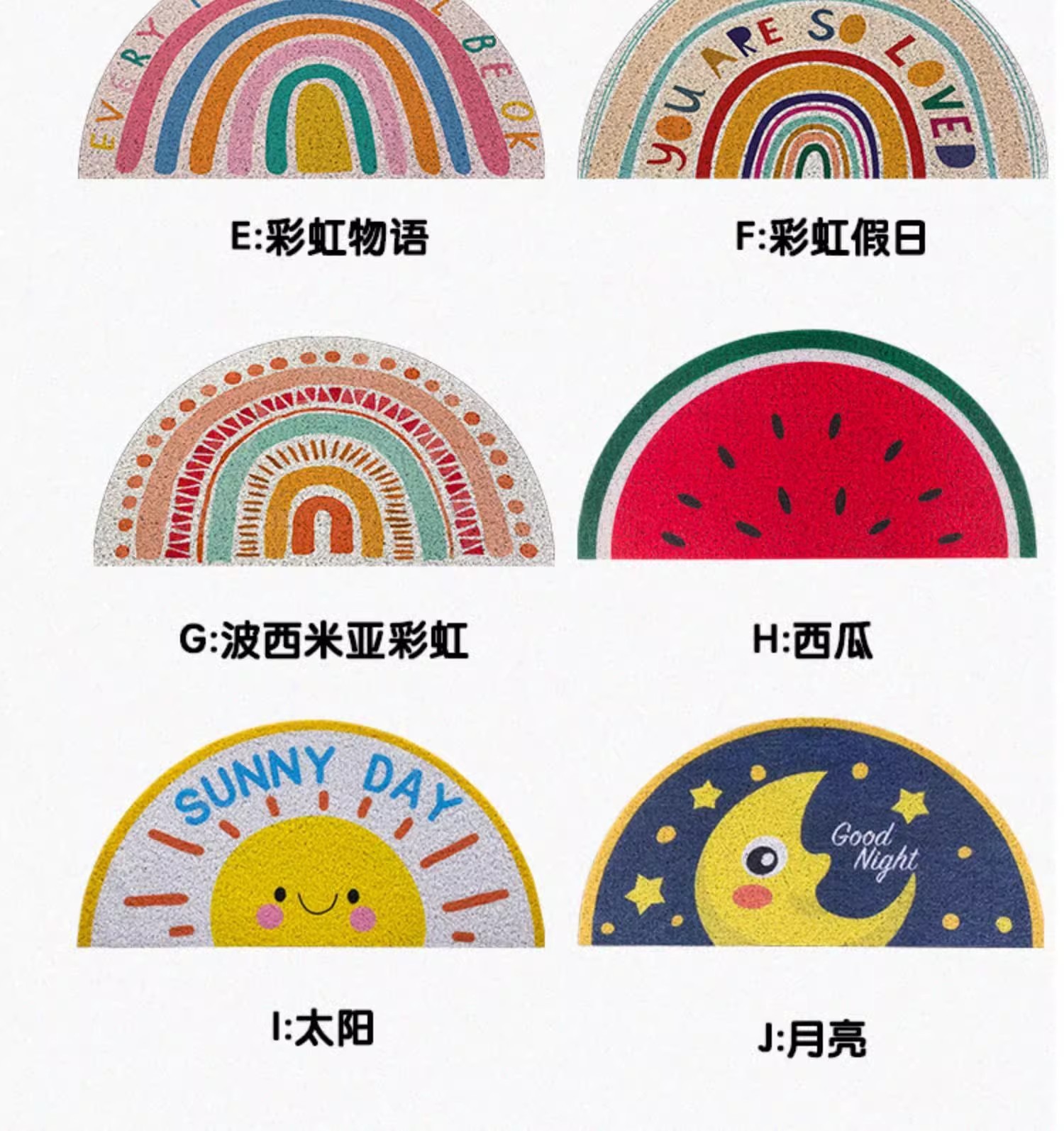 국경 간 temu 반원 무지개 실크 링 바닥 매트 입구 문 미끄럼 방지 마모 바닥 매트 가정용 PVC 절단 가능 바닥 매트스토어 가기