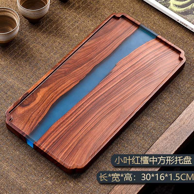 라이트 럭셔리 작은 잎 레드 샌달 우드 티 트레이 하이 엔드 에폭시 수지 빈티지 티 테이블 홈 오피스 스몰 사이즈 드라이 버블 트레이