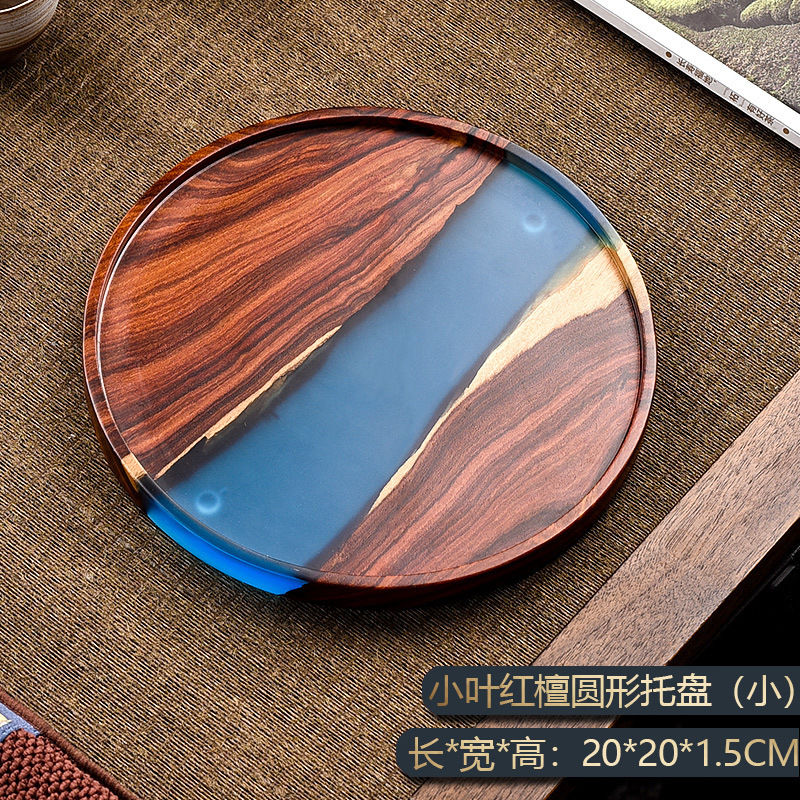 라이트 럭셔리 작은 잎 레드 샌달 우드 티 트레이 하이 엔드 에폭시 수지 빈티지 티 테이블 홈 오피스 스몰 사이즈 드라이 버블 트레이스토어 가기