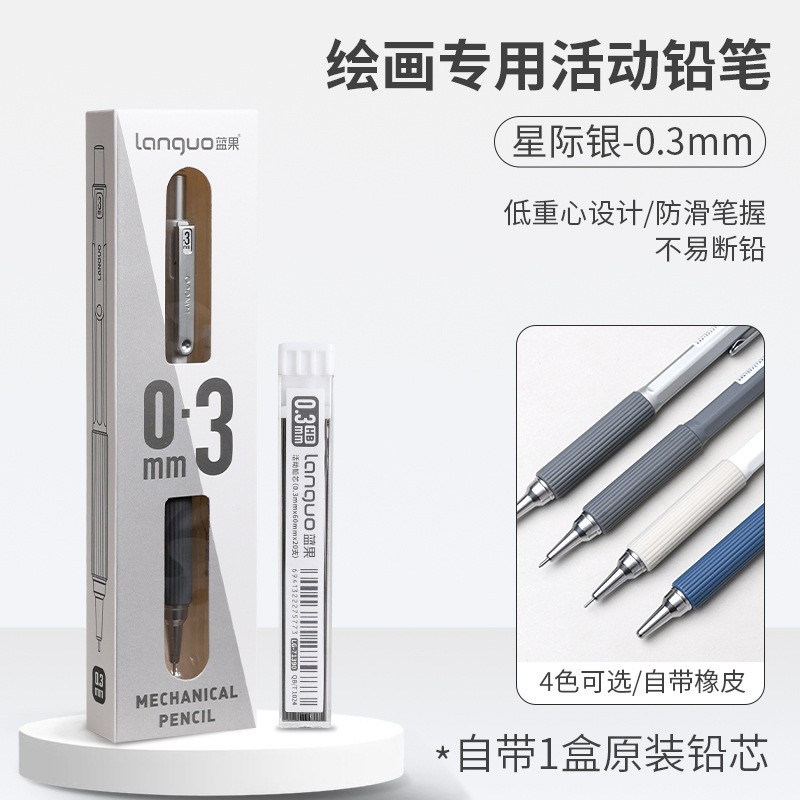 미술 그림 금속 샤프 펜슬 0.7 학생 쓰기 내장 지우개 고급스러운 소프트 그립 샤프 펜슬 0.3