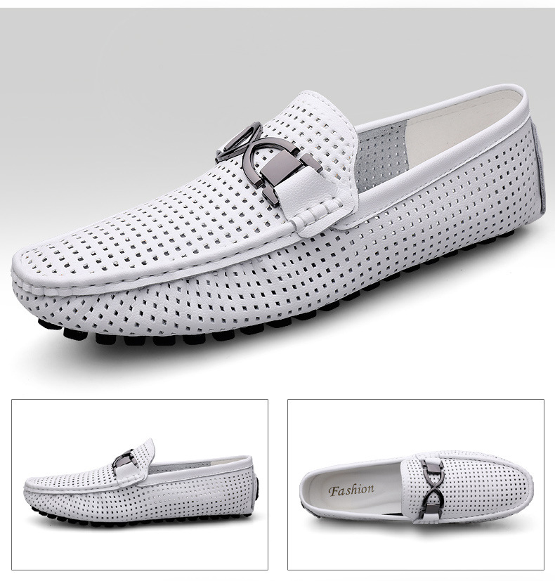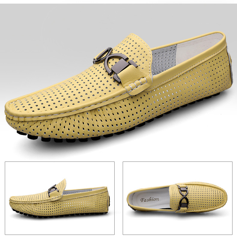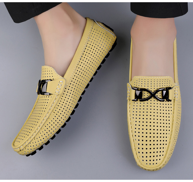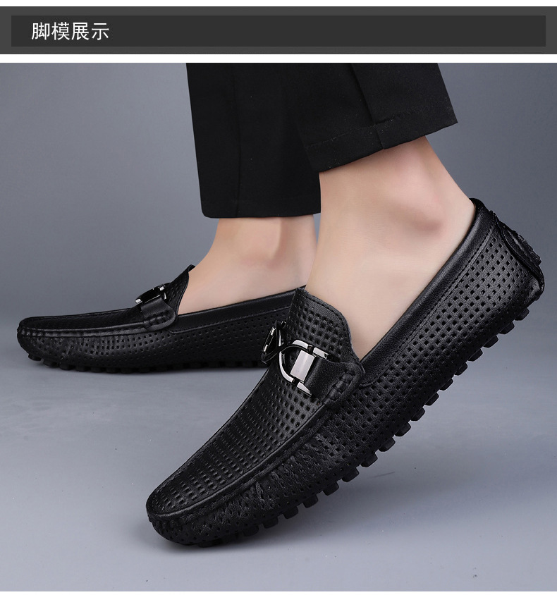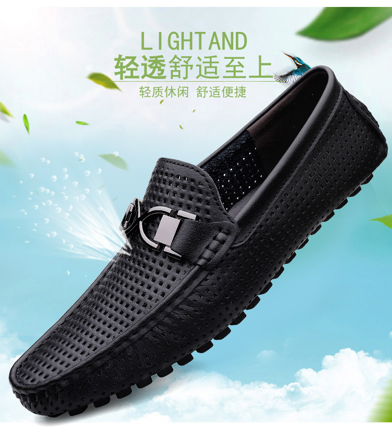 여름 가죽 신발 남자의 통기성 얇은 부드러운 바닥 부드러운 가죽 남성용 샌들 할로우 홀 게으른 캐주얼 6633 신발