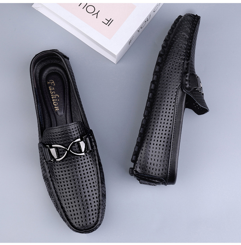 여름 가죽 신발 남자의 통기성 얇은 부드러운 바닥 부드러운 가죽 남성용 샌들 할로우 홀 게으른 캐주얼 6633 신발스토어 가기