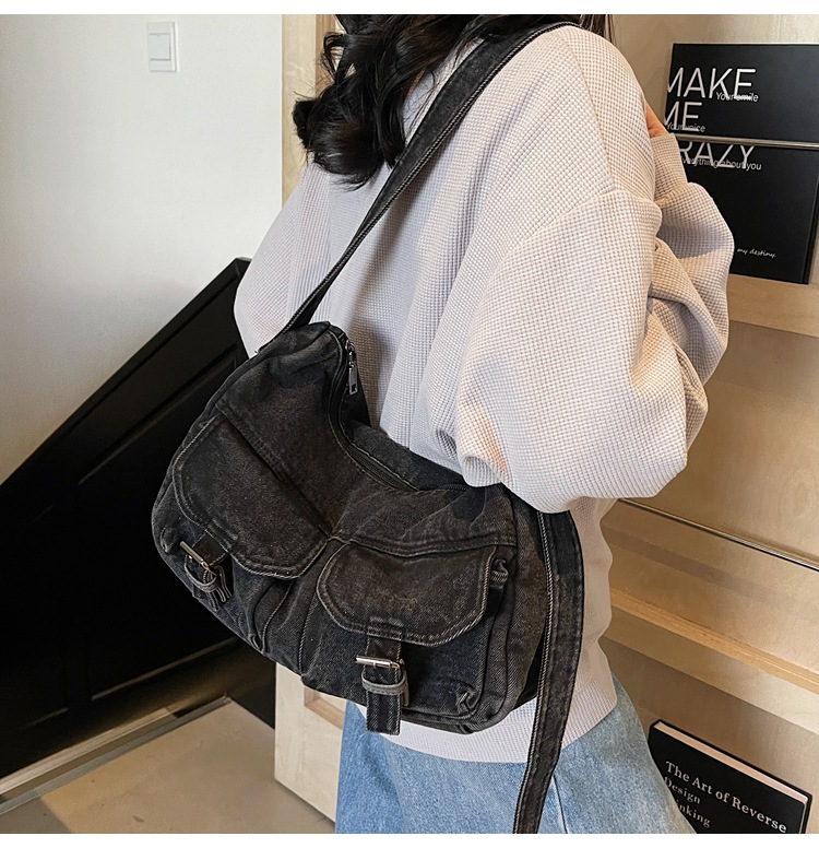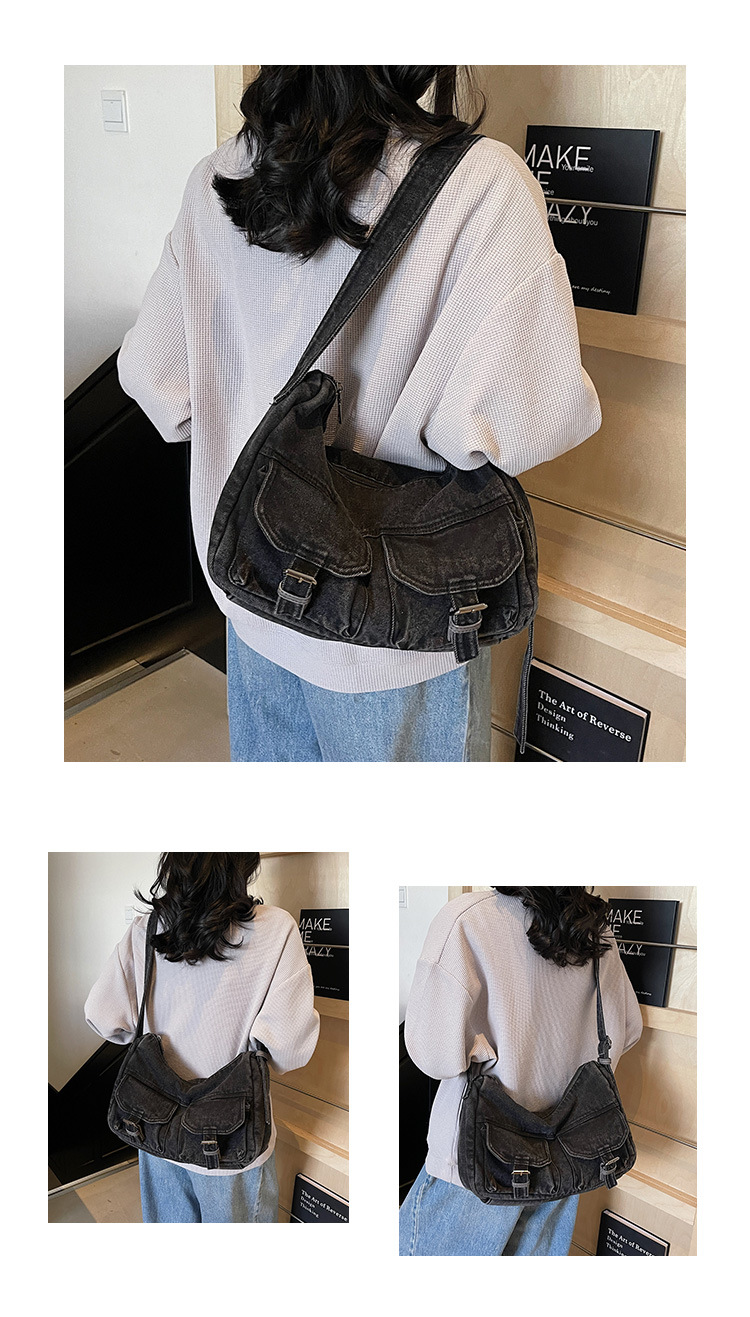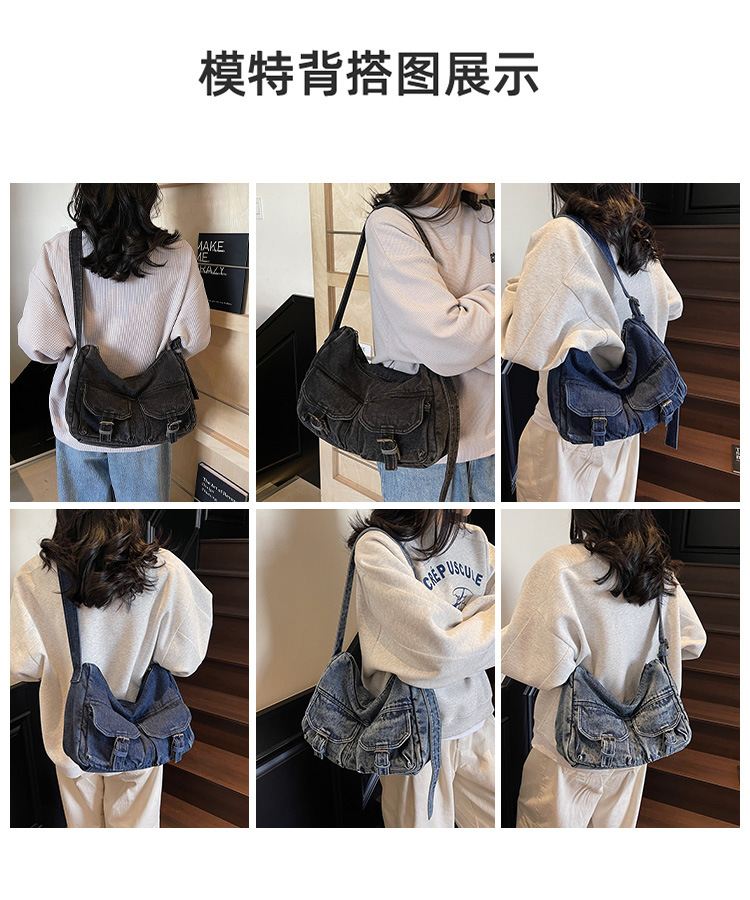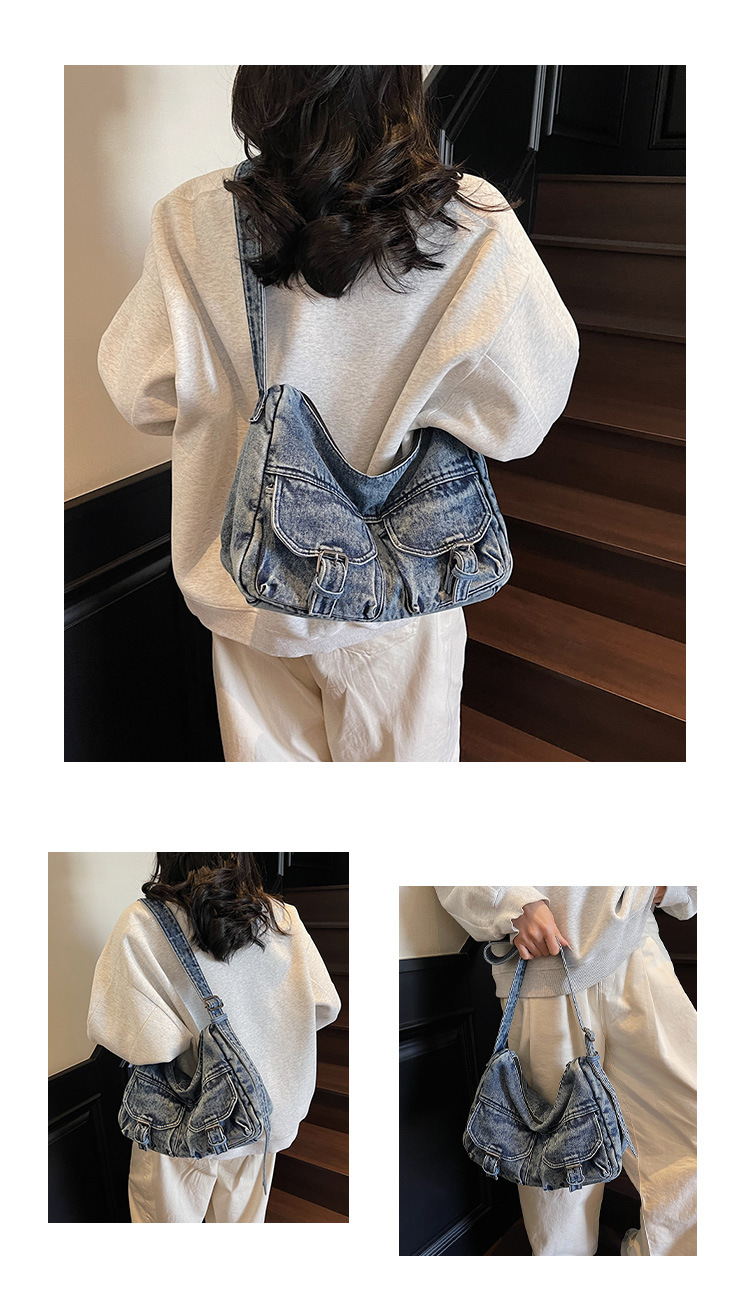 시니어 작은 많은 포켓 여름 데님 한국 오토바이 레트로 백 여성 비스듬한 새로운 2025 토트 백스토어 가기