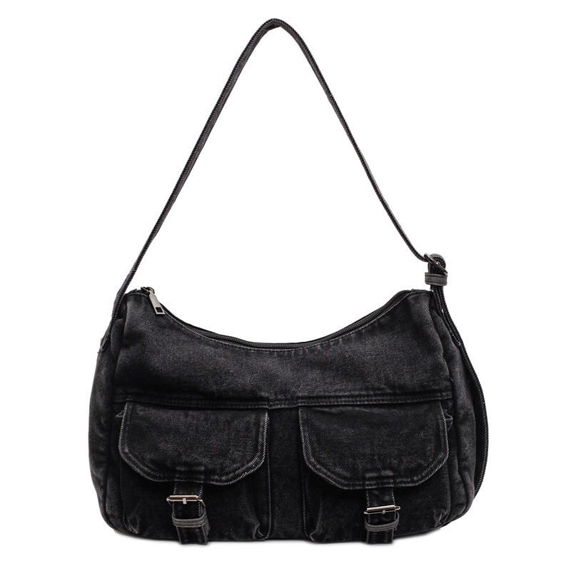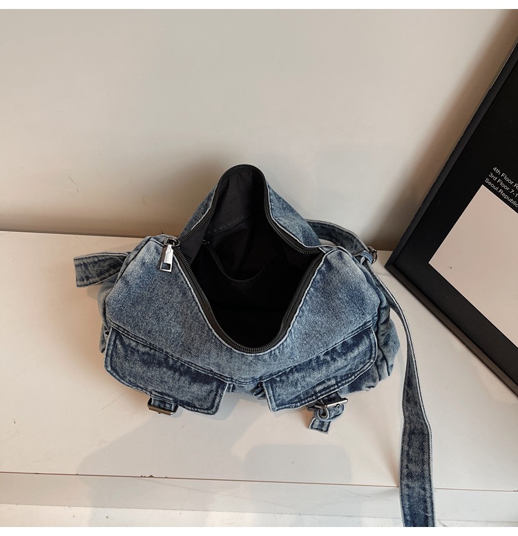 시니어 작은 많은 포켓 여름 데님 한국 오토바이 레트로 백 여성 비스듬한 새로운 2025 토트 백