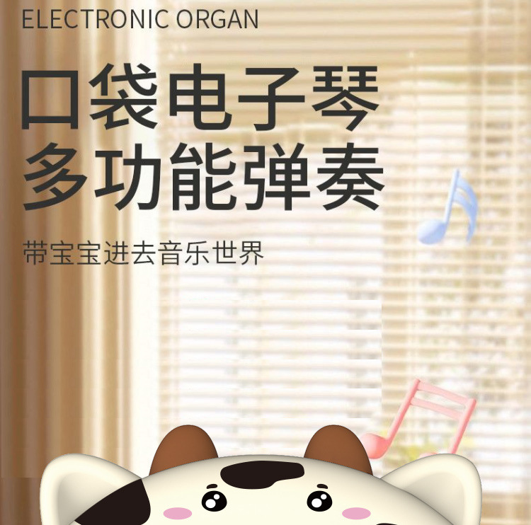 • 만화 동물 다기능 터치 컬러 스크린 전자 키보드 (흰 소)